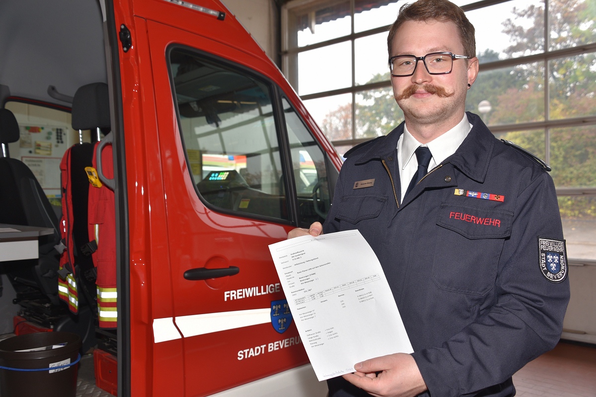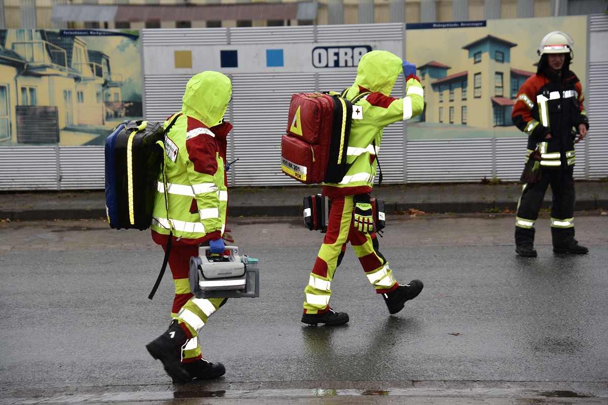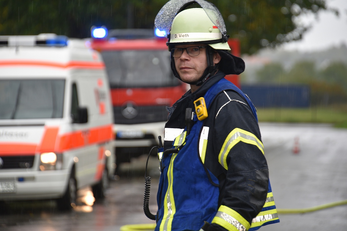 Die Übung war in vier Szenarien gegliedert, die an unterschiedlichen Orten in Beverungen und Dalhausen stattfanden. Bei einer Übung im Industriegebiet Beverungen mussten die Einsatzkräfte ein Kind retten, das unter einem Pkw eingeklemmt war. Da passendes technisches Gerät nicht verfügbar war, stand die Feuerwehr vor einer kniffligen Aufgabe und musste mit dem vorhandenen Material improvisieren. Parallel kümmerte sich der Rettungsdienst um die Versorgung des kleinen Patienten. „Für sie eine besondere Herausforderung, da Medikamente bei Kindern exakt nach Körpergewicht dosiert werden müssen“, sagt der Feuerwehr-Ausbilder und Notfallsanitäter Jan Nolte, der für dieses Szenario verantwortlich war und auch seine Kinder Lennart (10) und Jonathan (7) als vom Einsatz betroffene Kinder eingebunden hat. Ein weiteres Szenario führte die Kräfte in die verwinkelten Versorgungsgänge der Stadthalle Beverungen, in dem eine Brandmeldeanlage ausgelöst hatte. Die Ursache: Ein Brand mit einer starken Verrauchung in einem Technikraum. „Unbekannte Fluchtwege und die Orientierung über Feuerwehrpläne machten die Lage anspruchsvoll“, erklärte Alexander Bönning. Während die Feuerwehr im Inneren tätig war, blieb der Rettungsdienst in Bereitschaft und musste nachher doch noch einen kleinen Patienten mit einer Rauchgasvergiftung behandeln.