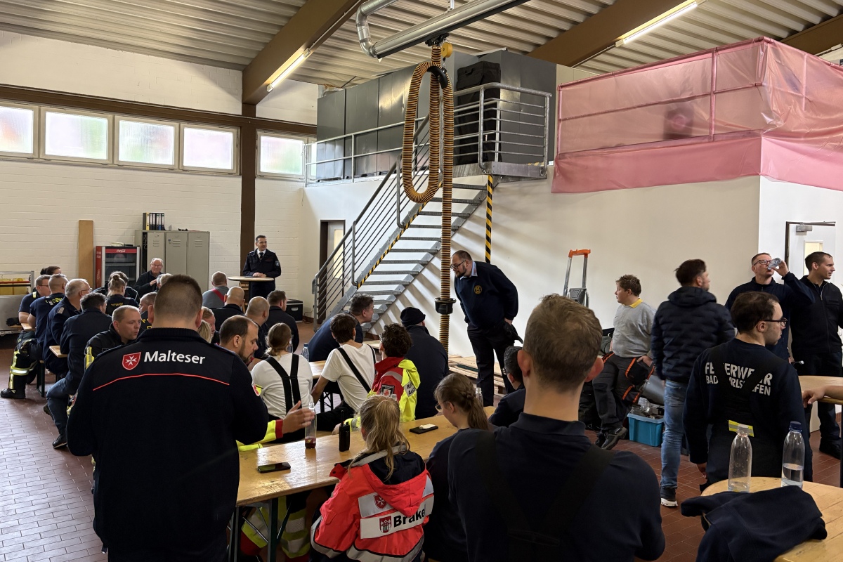 Beverungen (TKu). Feuerwehr und Rettungsdienst müssen im Ernstfall Hand in Hand arbeiten und das oft auch über Kreis- und Landesgrenzen hinweg. Um diese Zusammenarbeit noch besser aufeinander abzustimmen, wurde am vergangenen Samstag erneut ein sogenanntes „Feuerwehr-Zirkeltraining“ im Dreiländereck ausgerichtet. Zum ersten Mal fand dieses Ausbildungsformat jedoch im Stadtgebiet Beverungen statt. Rund 75 Einsatzkräfte stellten sich dabei realistischen Übungsszenarien, die nicht nur Routine, sondern vor allem koordinierte Abläufe forderten. Beteiligt waren die Feuerwehren aus Beverungen, Bad Karlshafen, Trendelburg und Boffzen sowie der Rettungsdienst des DRK Hofgeismar, die Rettungswache Beverungen und der Malteser Hilfsdienst aus Brakel. „Gemeinsam für mehr Sicherheit“, betonte Feuerwehr-Pressesprecher Alexander Bönning von der Feuerwehr Beverungen. „Die Teams wurden bewusst bunt durchmischt, damit Kameradinnen und Kameraden voneinander lernen können.“ Auch angehende Notfallsanitäterinnen und -sanitäter waren mit dabei, um unter möglichst realen Bedingungen zu üben.