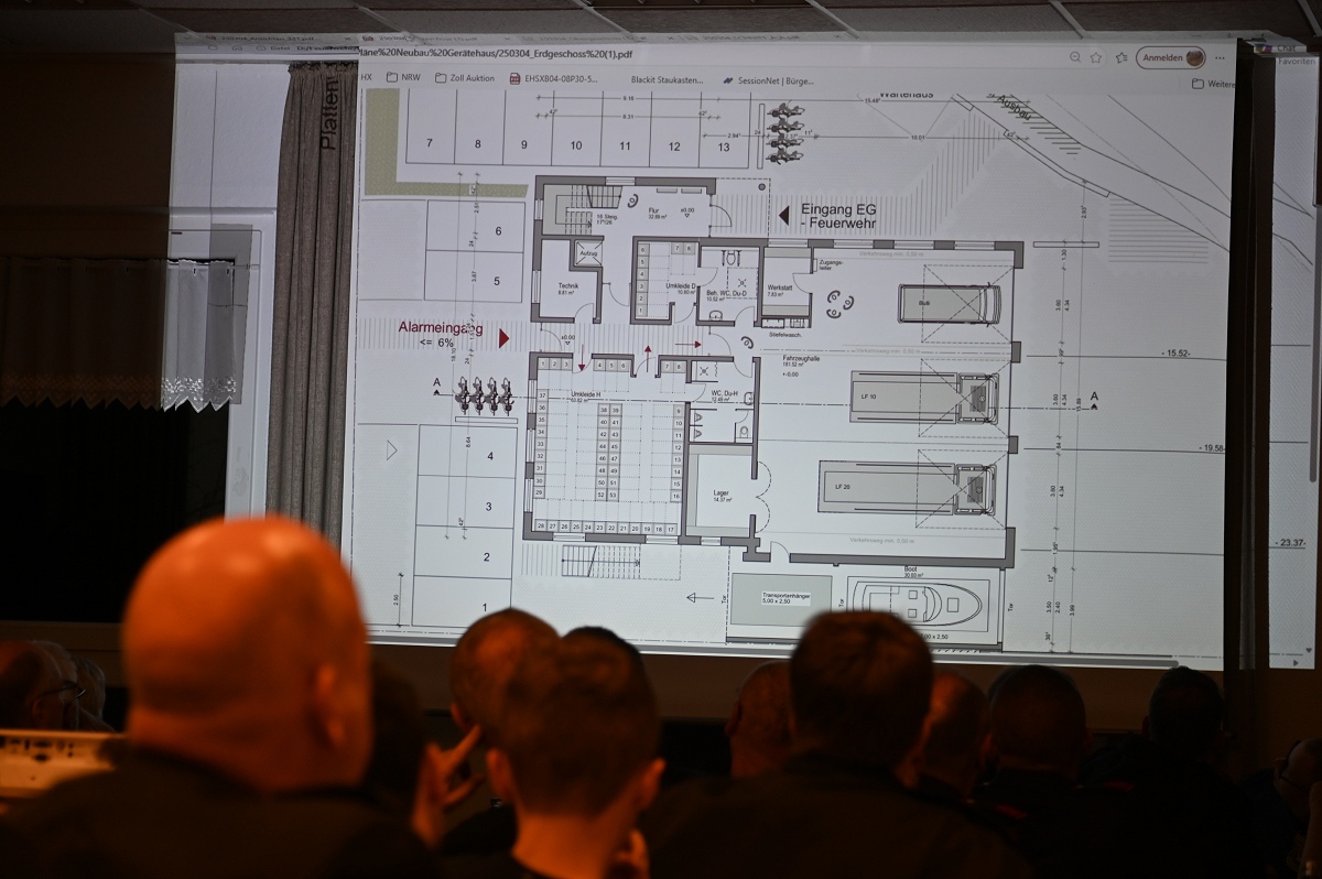Ausführlich wurde über den Stand des neuen Feuerwehrgerätehauses berichtet, das sich derzeit im Bau befindet. Aufgrund der kalten Witterung sind die Arbeiten aktuell ins Stocken geraten. Zwar sind die Fundamente bereits gegossen, die Bodenplatte konnte wegen der Wetterlage jedoch noch nicht hergestellt werden. Erstmals wurden den Mitgliedern die Baupläne des neuen Gerätehauses via Beamer präsentiert. Vorgesehen sind vier Fahrzeughallen für drei Einsatzfahrzeuge sowie ein Feuerwehrboot. Das Gebäude wird nach den neuesten Standards errichtet und soll zudem einen Aufzug erhalten. Damit wird es das erste Feuerwehrgerätehaus im Stadtgebiet Höxter mit einem eigenen Aufzug sein. Sowohl das alte Gerätehaus als auch das ehemalige, rund 120 Jahre alte Schulgebäude nebenan, sind bereits abgerissen worden, sodass nun der Neubau beginnen kann. Der Leiter der Feuerwehr Höxter, Jürgen Schmits, dankte den Kameradinnen und Kameraden für ihren engagierten Einsatz. Er zeigte sich froh, eine so starke und aktive Truppe im Hintergrund zu wissen.