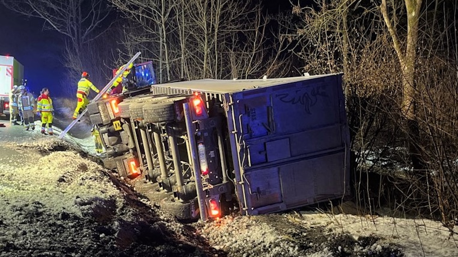 Scherfede (red). Am Freitag, 16. Januar, befuhr ein Lkw mit Auflieger die B68 aus Richtung Warburg-Scherfede kommend in Fahrtrichtung Paderborn. Gegen 4.30 Uhr kam das Gespann etwa in Höhe der Abfahrt Hardehausen aus noch ungeklärter Ursache nach rechts von der Fahrbahn ab. Der mit Getreide beladene Sattelauflieger kippt daraufhin auf die rechte Fahrzeugseite und bleibt auf dem Grünstreifen liegen. Der 58-jährige Fahrer wurde durch die Feuerwehr aus seiner Fahrerkabine befreit und zur weiteren medizinischen Untersuchung in ein Krankenhaus gebracht.