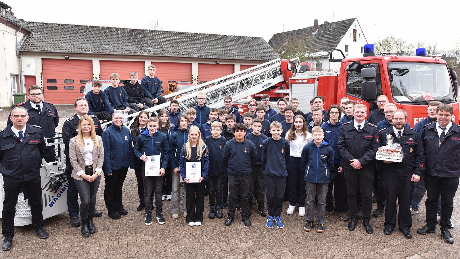 Folgende Ehrungen wurden während der Versammlung ausgesprochen: Die Jugendflamme der Stufe 1 erhielten Jannes Denecke, Janek Denecke, Nele Füchsel, Louis Knickelmann, Georg Kriegert, Philipp Noble und Romy Schmidt. Für ihre fünfjährige Mitgliedschaft in der Jugendfeuerwehr wurden Linus Köhne und Jarne Schlüter ausgezeichnet. Zudem konnten mit Noel Schrick, Leon Wresche und Sophie Kube drei Jugendliche offiziell in die aktive Feuerwehr übernommen werden. Hauptbrandmeister Andreas Mühlen von der Löschgruppe Albaxen wurde mit einem Geschenk von seinen Kameraden verabschiedet. Er war bislang stellvertretender Jugendwart der Gruppe Nord und wurde für sein Engagement noch einmal ausdrücklich gewürdigt. Zum Abschluss bedankte sich Sascha Kamp bei allen Jugendlichen, Betreuern und Unterstützern für ihren Einsatz und ihr Engagement, das die erfolgreiche Jugendarbeit der Feuerwehr Höxter möglich mache und gab noch einen kurzen Ausblick auf dieses und nächstes Jahr: Man sei in Gesprächen mit den Verantwortlichen, in Höxter wieder ein Kreiszeltlager durchzuführen. Stattfinden soll es in der letzten Woche der Sommerferien auf dem Festplatz in Lüchtringen. Für 2027 könne man sich wieder vorstellen, ein bis zu zehntägiges Gruppenzeltlager in Deutschland oder Holland durchzuführen, so Sascha Kamp zum Ende der Versammlung. Die Jugendfeuerwehr Höxter zählt aktuell 71 Mitglieder, darunter zehn weibliche Kameradinnen.