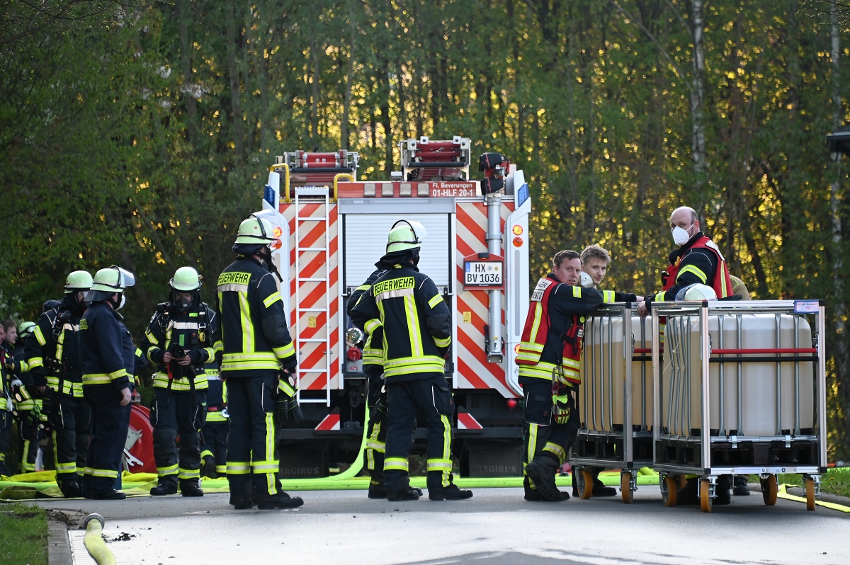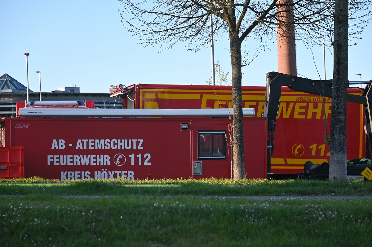 Verletzt wurde niemand. Zum Zeitpunkt des Brandausbruchs konnten sich alle Personen im betroffenen Gebäude ins Freie retten, sodass keine Rettungsmaßnahmen erforderlich waren. Die Rauchentwicklung war erheblich: Eine dichte Rauchsäule zog über das Stadtgebiet, der Brandgeruch war weithin wahrnehmbar. Warn-Apps wie NINA informierten die Bevölkerung und riefen dazu auf, Fenster und Türen geschlossen zu halten. Rund 120 Einsatzkräfte waren zeitweise vor Ort. Neben zahlreichen Löschmaßnahmen kam auch eine Drohne der Kreisfeuerwehr Höxter zum Einsatz, um sich aus der Luft ein Bild der Lage zu verschaffen. Gegen 20:15 Uhr wurde zusätzlich ein Bagger eingesetzt, um die stark beschädigten Anbauten kontrolliert abzureißen. Dadurch konnten Glutnester freigelegt und gezielt abgelöscht werden. Die Nachlöscharbeiten zogen sich bis tief in die Nacht hin. Einsatzkräfte kontrollierten immer wieder mögliche Brandstellen, um ein Wiederaufflammen zu verhindern. Das betroffene Lagergebäude brannte vollständig aus. Feuerwehrleute konnten aus Sicherheitsgründen nicht mehr von innen löschen, sondern mussten von außen auch Schaum einsetzen. Zur genauen Brandursache gibt es weiterhin keine gesicherten Erkenntnisse. Nach bisherigen Hinweisen könnte das Feuer außerhalb des Gebäudes entstanden sein und anschließend übergegriffen haben. Die Kriminalpolizei hat die Ermittlungen aufgenommen.