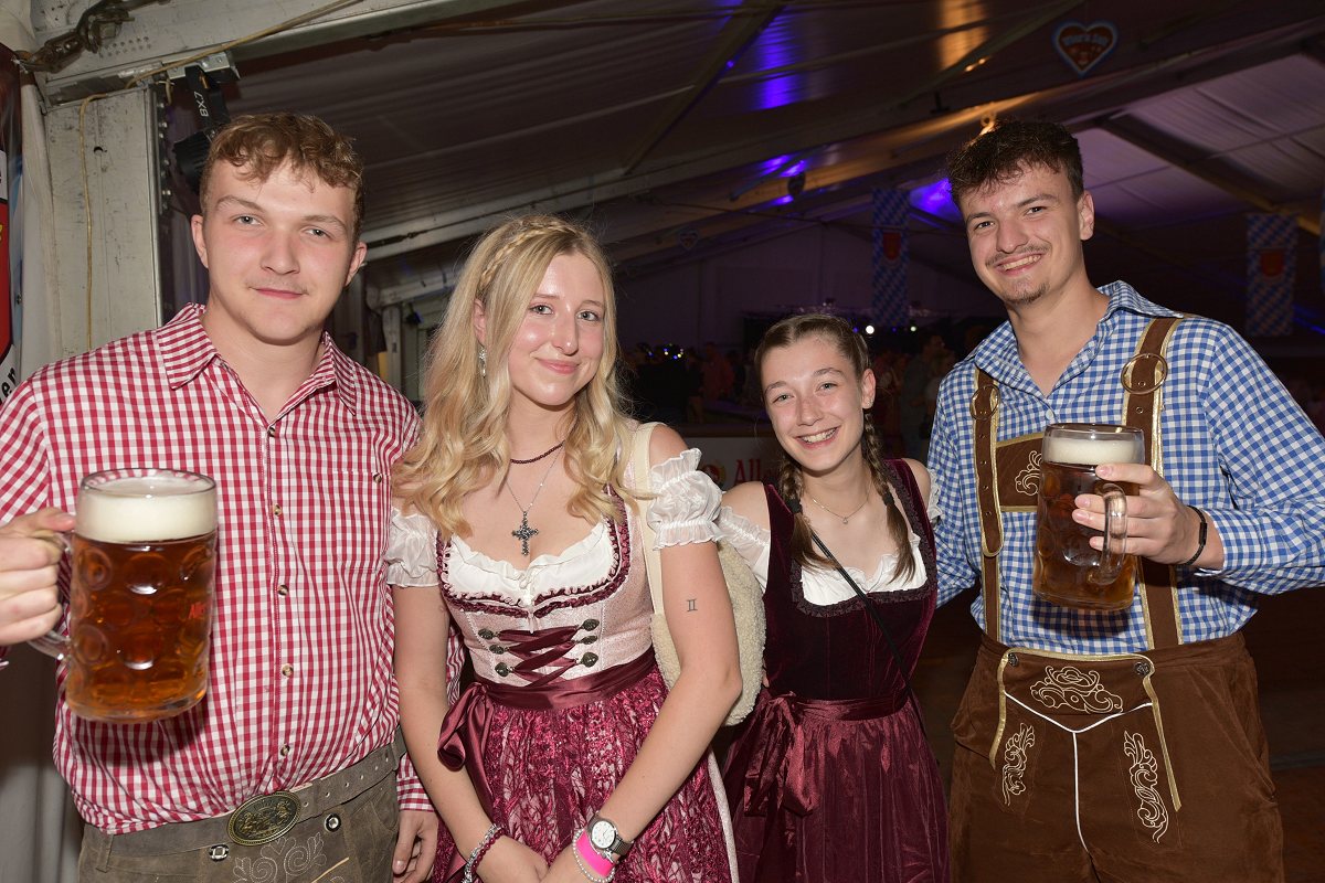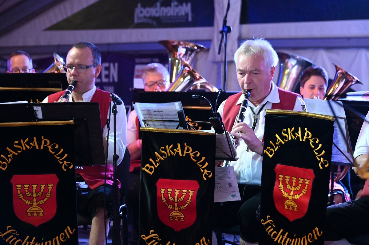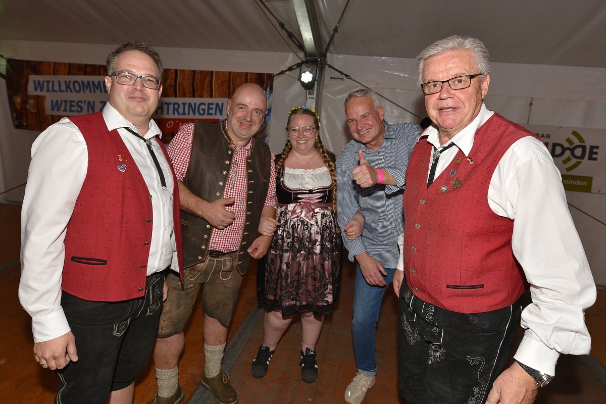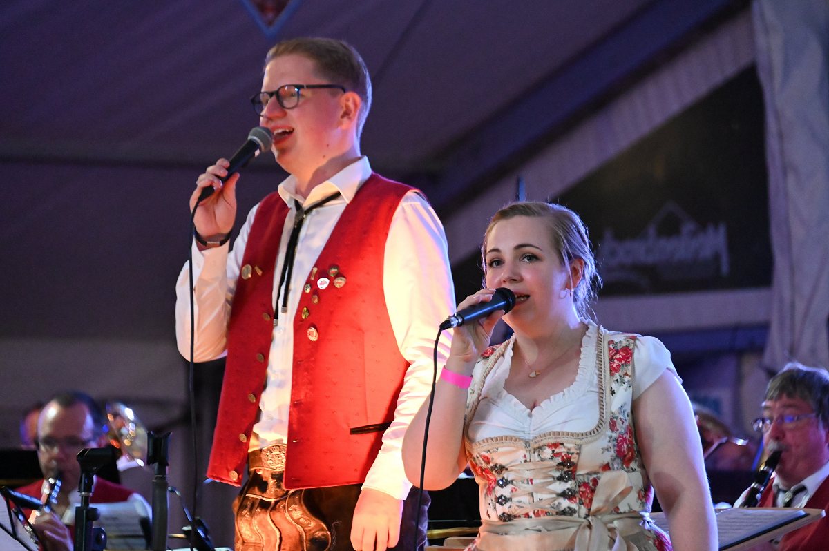 Lüchtringen (TKu). So war das Oktoberfest Lüchtringen: Zünftig, laut und voller Lebensfreude feierte Lüchtringen am vergangenen Wochenende sein Oktoberfest, die „Lüchtringer Wies’n“ und verwandelte das große Festzelt auf dem Festplatz im Lambertweg in ein Meer aus Dirndl und Lederhosen. Mehr als 1500 Besucherinnen und Besucher ließen sich die größte Oktoberfest-Party der Region nicht entgehen und sie wurden nicht enttäuscht. Mit zwei kräftigen Hammerschlägen zapfte Marcus Busse von der Brauerei Allersheim am Samstagabend das erste Fass an und eröffnete gemeinsam mit Festwirt Stefan Friedrich, dem Vorsitzenden der Blaskapelle Lüchtringen, Christoph Missing, sowie Dirigent Martin Heinemeyer das Fest. Damit war der Startschuss für zwei Tage voller Musik und Feierlaune gefallen. Den Auftakt gestaltete die gastgebende Blaskapelle Lüchtringen, ehe die „FrankenKracher“ mit ihrem Mix aus bayerischer Blasmusik und modernen Partyhits das Zelt zum Beben brachten.