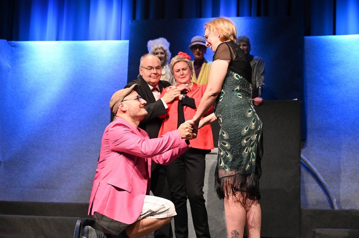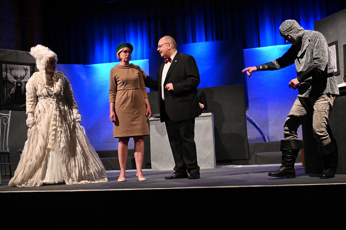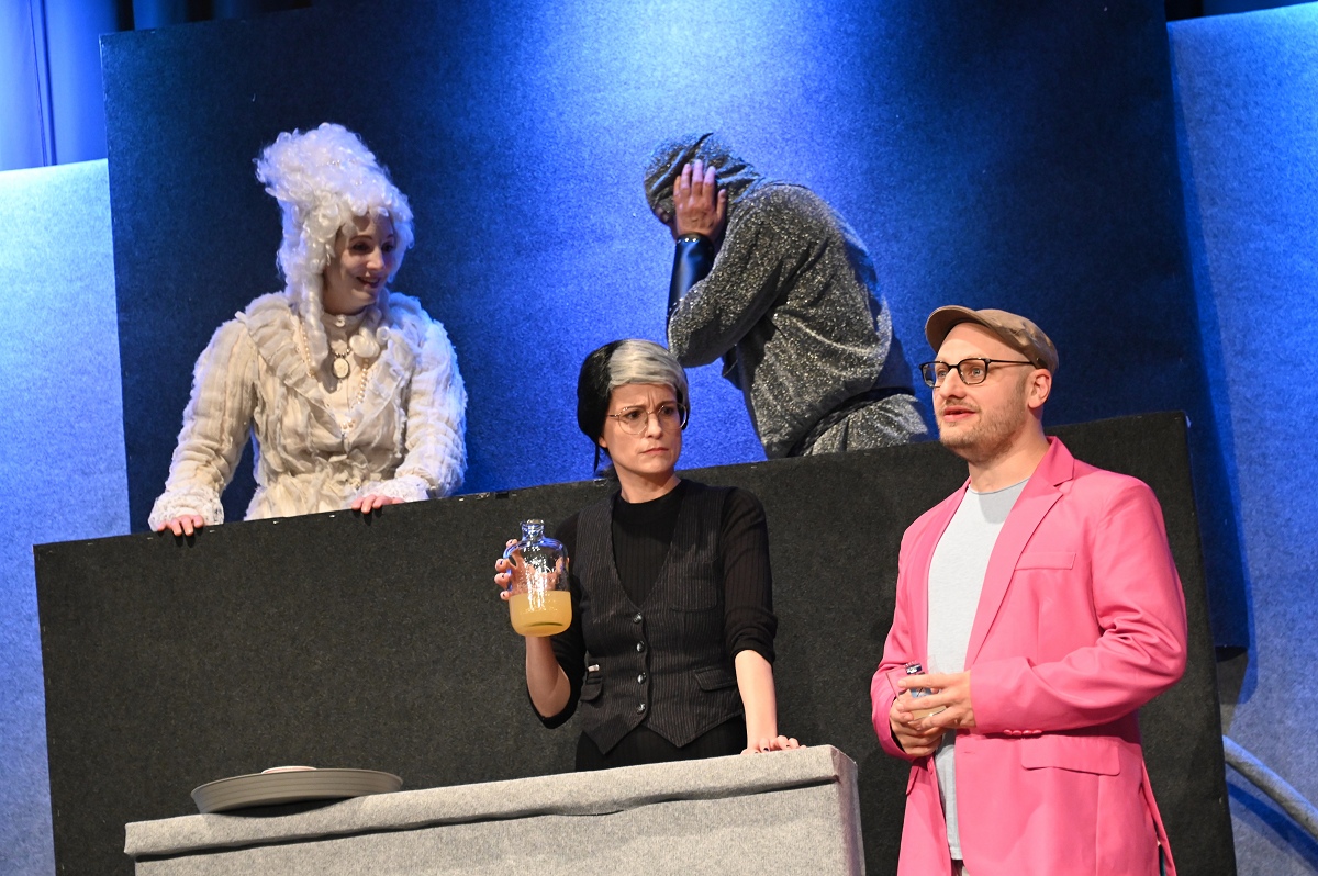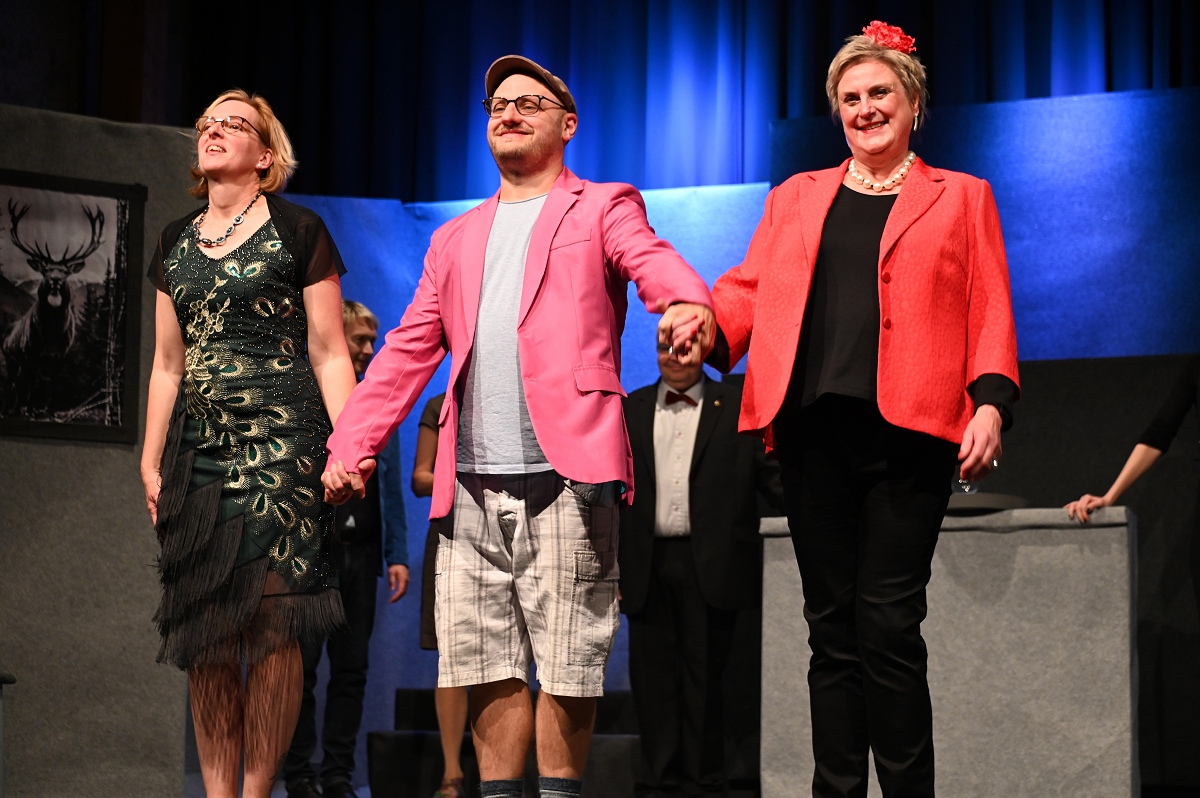 Ottbergen (TKu). Das Theater-Ensemble ThimKu, Theater im Kuhstall, hat am vergangenen Wochenende mit seiner neuen Komödie „Burghotel Schlosshof – Kredit wird nicht gegeben“ von Evelyn Köster erfolgreich abgeliefert. Am 8. und 9. November feierte das Stück im voll besetzten Kuhstall in Ottbergen seine Premiere mit zwei Aufführungen. Das Publikum zeigte sich begeistert von der turbulenten Handlung und dem, mit viel Freude agierenden, Ensemble, das an beiden Abenden mit viel Applaus belohnt wurde. Im Mittelpunkt der Aufführung steht das Burghotel Schlosshof, ein in die Jahre gekommener Hotelkomplex, der kurz vor dem Aus steht. Hoteldirektor Fröhlitsch, seine Mitarbeiterinnen Pitrella Partinowa und Hannelore Prügelhausen sowie zwei liebreizende Geister setzen große Hoffnungen in eine illustre Gästeschar. Doch unter ihnen soll sich auch ein Spion der Finanz- und Bilanz AG befinden. Mit einer Mischung aus Humor, Spannung und skurrilen Eigenheiten nimmt das Ensemble das Publikum mit in eine Welt voller Rätsel, Notizbücher und schräger Überraschungen. Besonders war dieser Premierenstart auch für Maren Schlebusch, Gründungsmitglied des ThimKu e. V., die mit dieser Inszenierung ihr Regiedebüt gab.