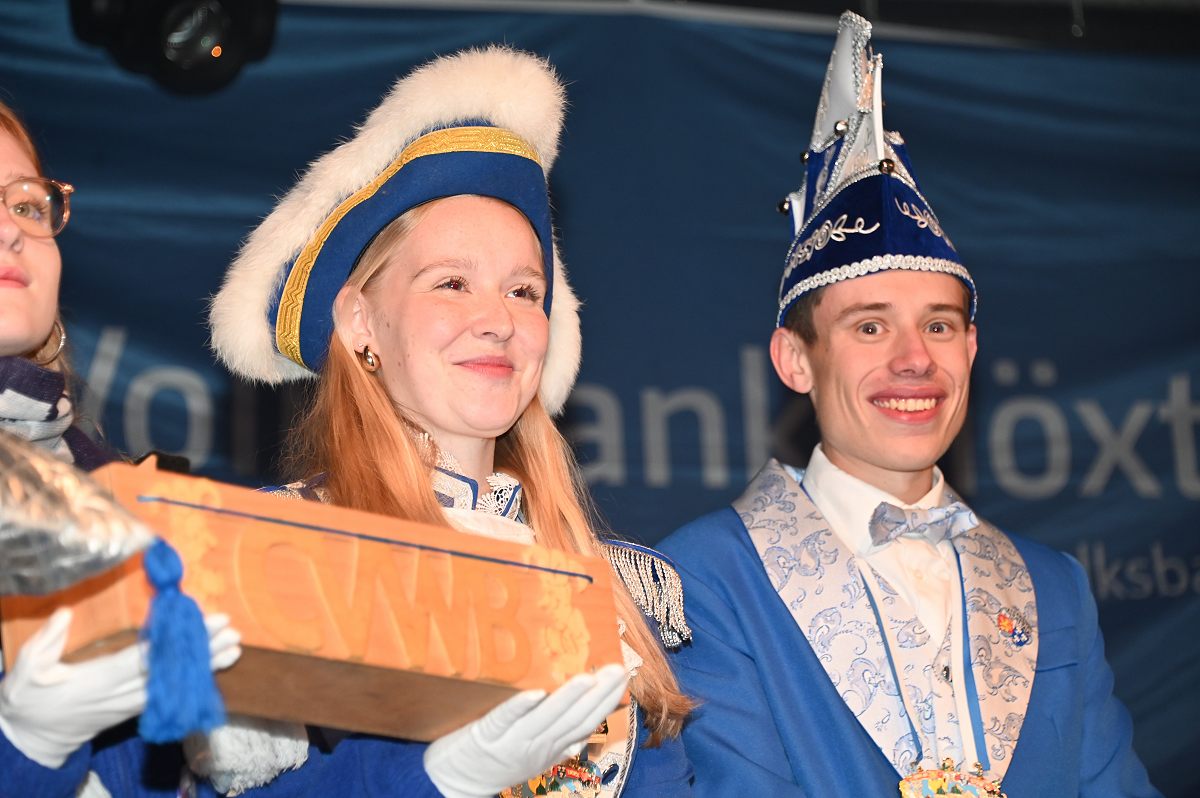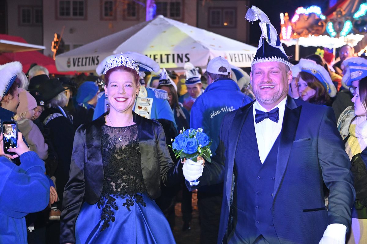 Doch mit dem Sturm auf das Rathaus war der närrische Feiertag noch lange nicht zu Ende. Bereits am Nachmittag startete in Beverungen das bunte Treiben auf dem Kellerplatz, begleitet von lauter Musik, Tanzeinlagen der Garden und einem fröhlichen Programm für Groß und Klein. Als Höhepunkt des Tages wurden um 17:11 Uhr die neuen Tollitäten proklamiert: Prinz Florian, „der balearisch Regierende“ (Kastens), und Prinzessin Carena, „die ewig Marschierende“ (Zarnitz), übernehmen das närrische Zepter der Jubiläumssession. An ihrer Seite führen „Till, der fröhlich Kreative“ (Marx) und Prinzessin „Johanna, die glitzernd Aktive“ (Kleinschmidt) die jungen Karnevalistinnen und Karnevalisten an. Mit großem Applaus wurden zugleich die scheidenden Tollitäten verabschiedet, die sich mit einer Ehrenordenverleihung aus ihren Ämtern verabschiedeten. Sogar das WDR-Fernsehen war vor Ort und berichtete aus der Karnevalshochburg im Dreiländereck.