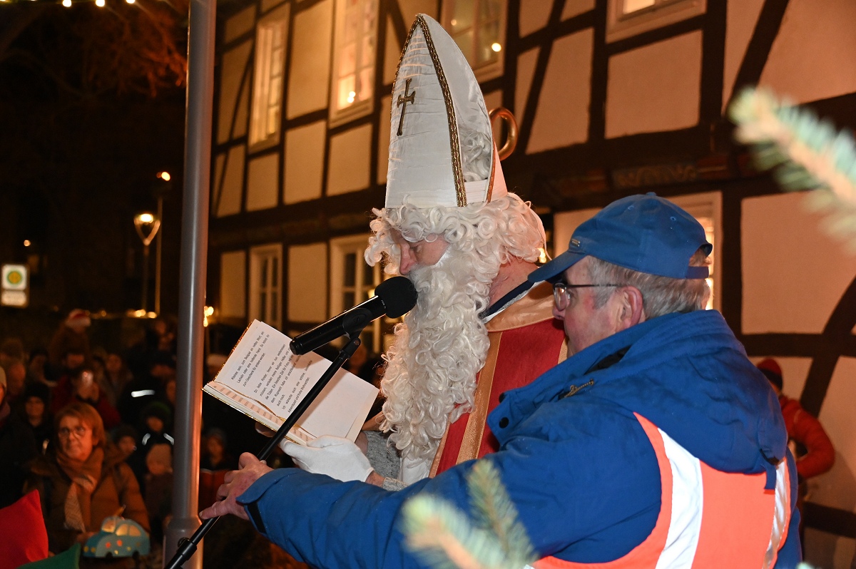 Ein besonderer Höhepunkt für Familien war der Laternenumzug am späten Nachmittag. Gemeinsam zogen Kinder, Eltern und Gäste vom Marktplatz zum Bahnhof, wo der Nikolaus, zur großen Freude der Kinder, mit dem Zug ankam, zusammen mit Knecht Ruprecht, den Zwergen und natürlich den weihnachtlich angezogenen „Nethe-Eseln“. Begleitet von Musik wurde er anschließend zum KuStall geführt, wo er sich viel Zeit für die kleinen Besucher nahm, Nikolaustüten verteilte und für Erinnerungsfotos zur Verfügung stand. Auch der Sonntag bot ein abwechslungsreiches Programm. Nach dem Frühschoppen und dem traditionellen Grünkohlessen lud das Advents-Café mit einer großen Auswahl an selbstgebackenen Kuchen und Torten zum Verweilen ein. Angebote der Pfadfinder, ein Streichelzoo sowie eine Modellbahnanlage im KuStall begeisterten große und kleine Besucher gleichermaßen.