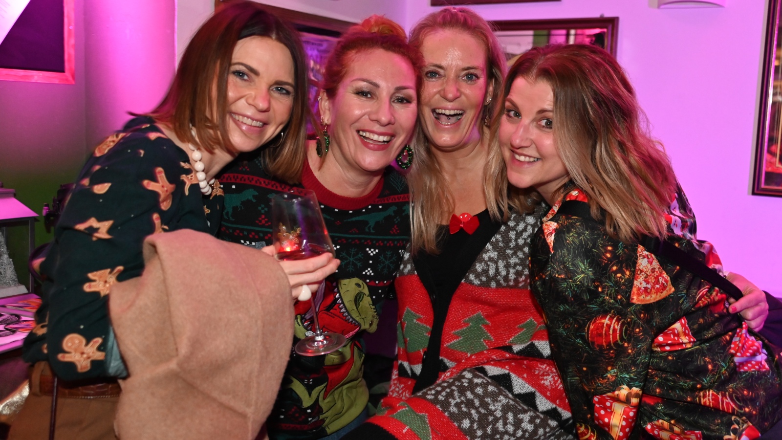 Schon beim Betreten der festlich dekorierten Bürgerstuben wurde klar: Hier steht das „kitschige Weihnachtsfest“ im Mittelpunkt. Heizpilze draußen, ein virtuelles Kaminfeuer, Mistelzweige und Glühwein schufen eine heimelige Atmosphäre, die perfekt zu den skurrilen Outfits der Gäste passte. Diese Weihnachtspullover wurden zum Sieger ernannt: Von blinkenden Rentier-Pullovern bis hin zu selbstgebastelten Kreationen war alles dabei. Höhepunkt des Abends war die Prämierung der hässlichsten Weihnachtspullis um Mitternacht. Den ersten Platz sicherte sich Robin Schulz mit seinem Pulli. Platz zwei ging an Tia Kurt mit ihrer Freundin Anastasia Eiswert, die zusammen einen Weihnachtsbaum bildeten. Platz drei ging an einen Besucher, der als Blautanne seinen Baum stand. Neben den Pulli-Prämierungen sorgte auch das Weihnachtslieder-Karaoke für große Begeisterung. Mutige Gäste stellten sich ans Mikrofon und lieferten humorvolle Performances.