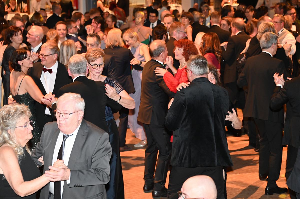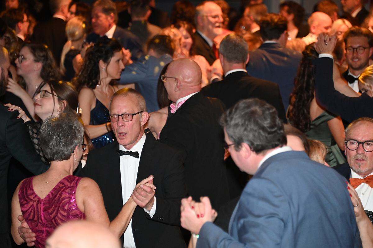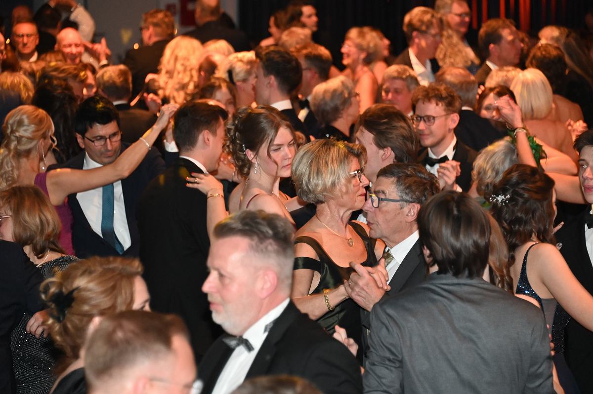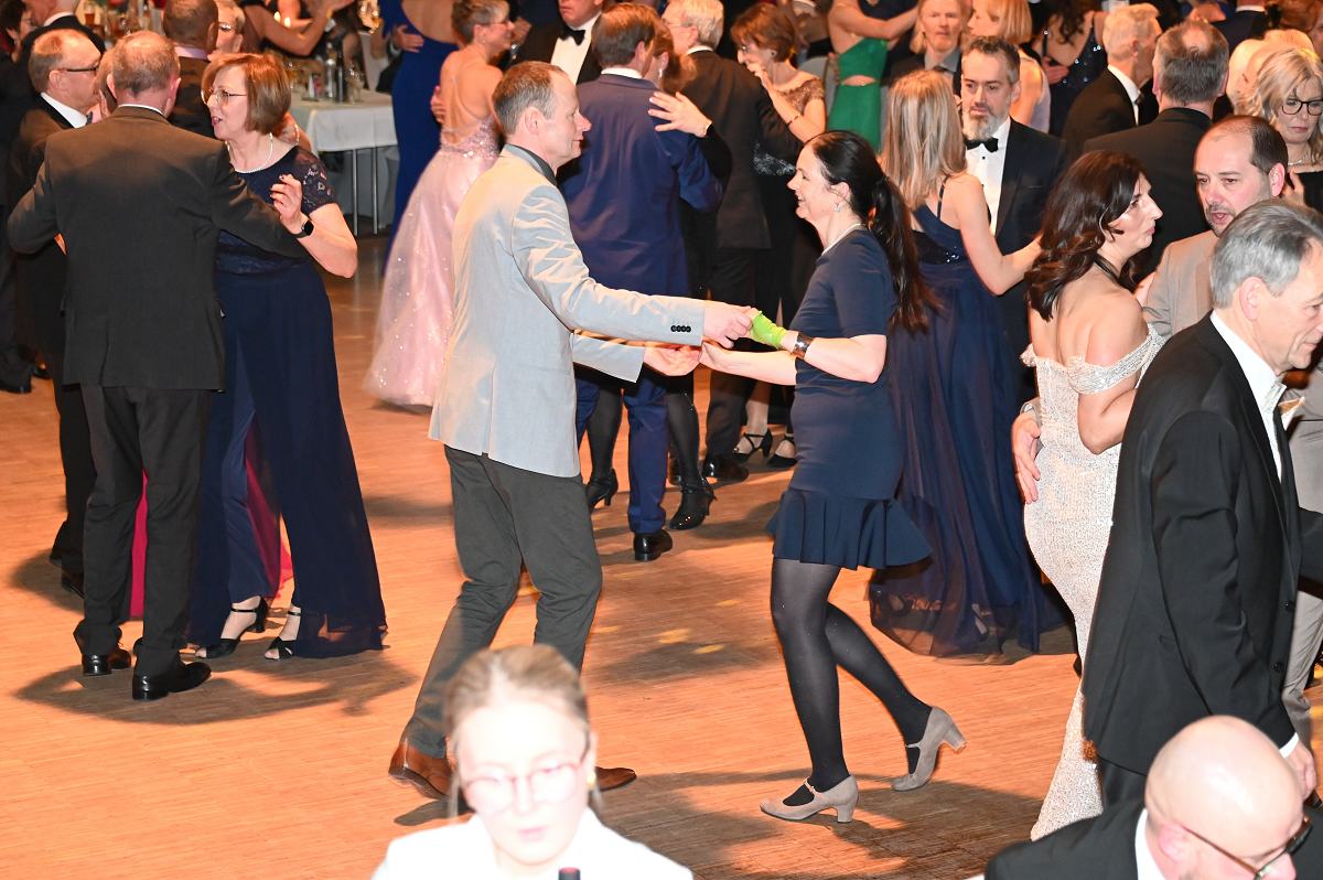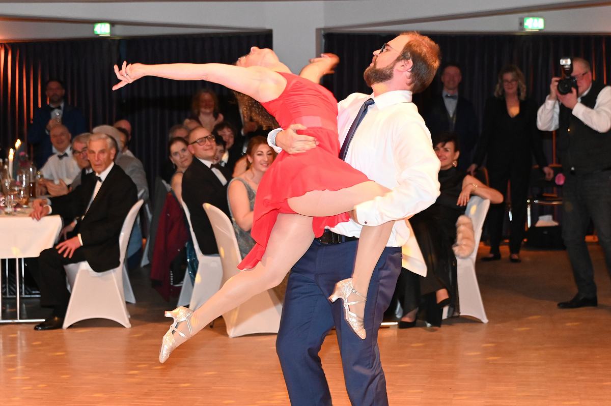 Doch statt Enttäuschung folgte Begeisterung: Ball-Besucher Daniel Hesse von der Tanzschule Hesse aus Heiligenstadt sprang spontan ein und „rettete“ den zweiten Hauptact. Mit einer Line-Dance-Vorführung, Animationen und einem eigenen Tanzpaar brachte Hesse die Stimmung zum Kochen. „Wir haben uns das aus den Fingern gesogen“, sagte er schmunzelnd und traf damit genau den Geschmack des Publikums. Besonders der Auftritt des Tanzpaares Diana und Michael aus Heiligenstadt zum Song „Pretty Woman“ sorgte für großen Applaus. Insgesamt war die Gruppe mit 26 Personen vertreten. Für Daniel Hesse schloss sich dabei ein Kreis: Bereits vor 15 Jahren hatte er in der Stadthalle Beverungen Tanzkurse gegeben. Seine Verbundenheit zum Kulturball sei bis heute geblieben. Für die musikalische Begleitung sorgten Jürgen Becker und seine Amorados Showband. Die achtköpfige Formation überzeugte erneut mit ihrer großen musikalischen Bandbreite und direkter Publikumsnähe. Die Tanzfläche blieb daher durchgehend gut gefüllt, wenn sie vom Walzer bis Disco-Fox mit einer großen Bandbreite an bester Ball-Musik begeisterten.