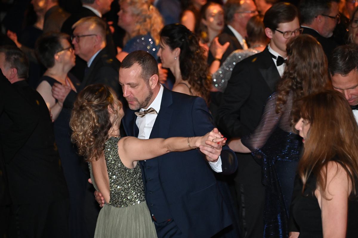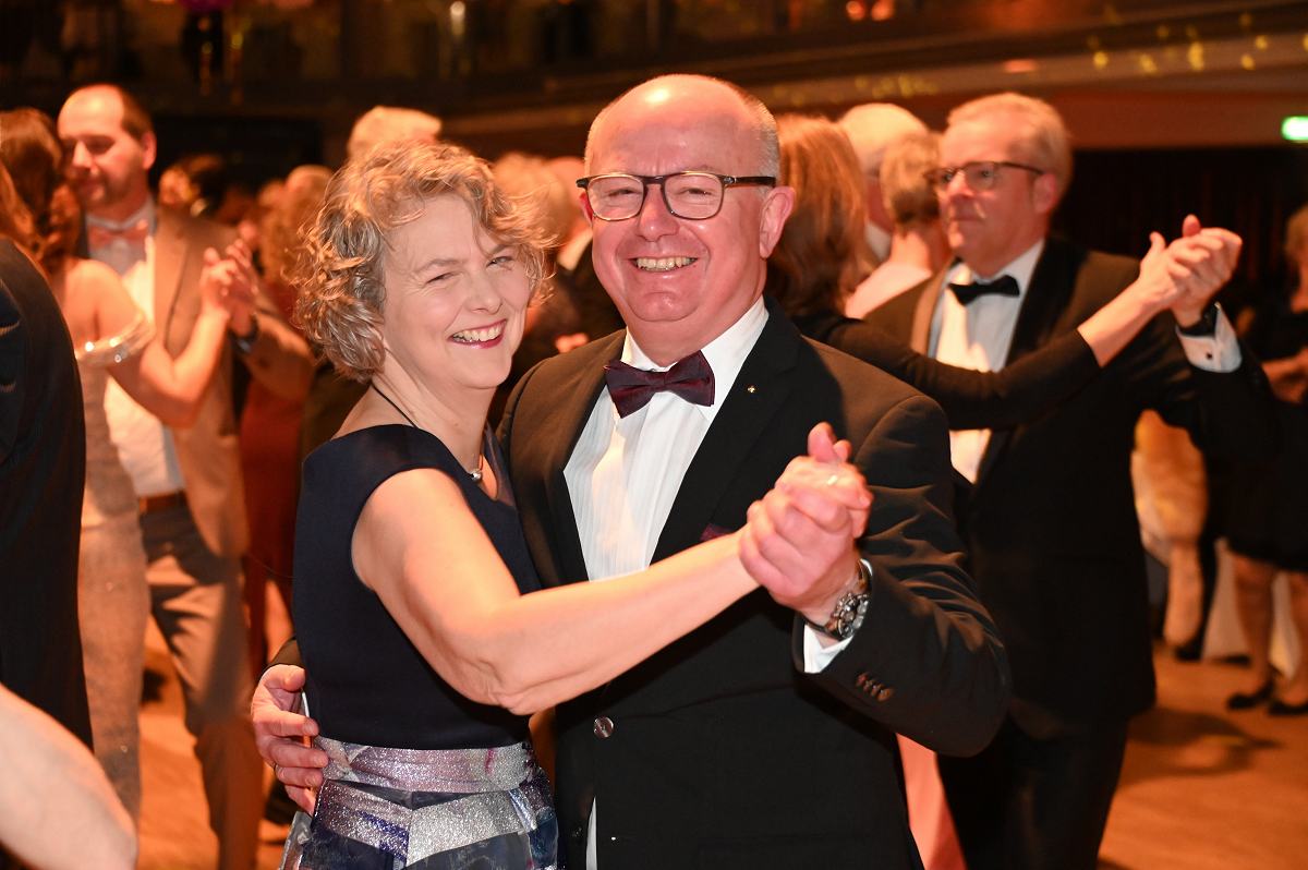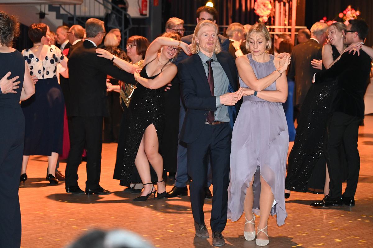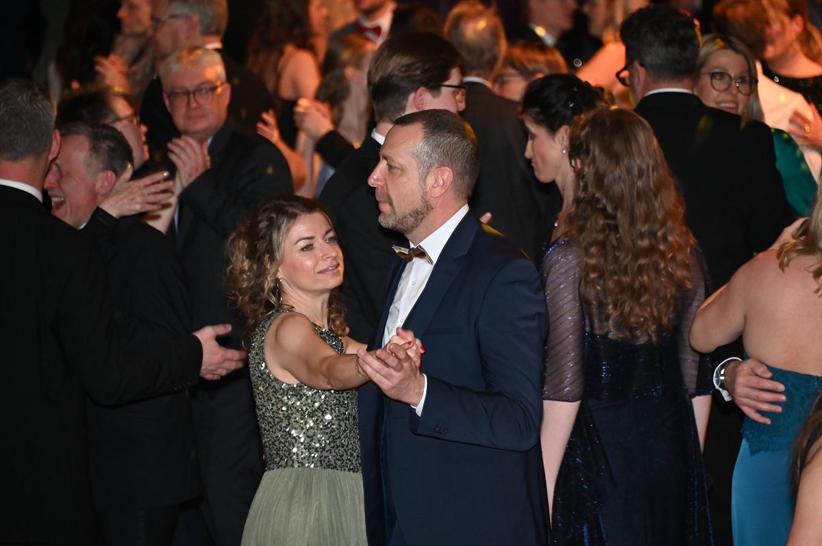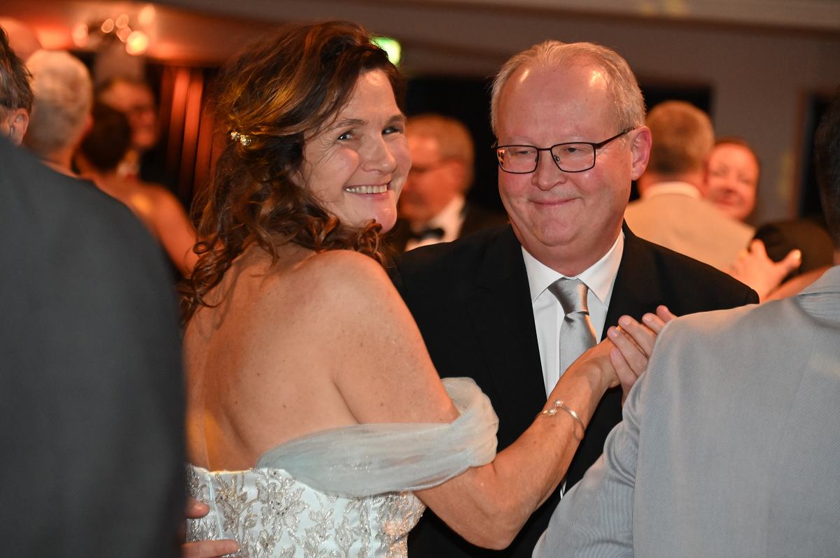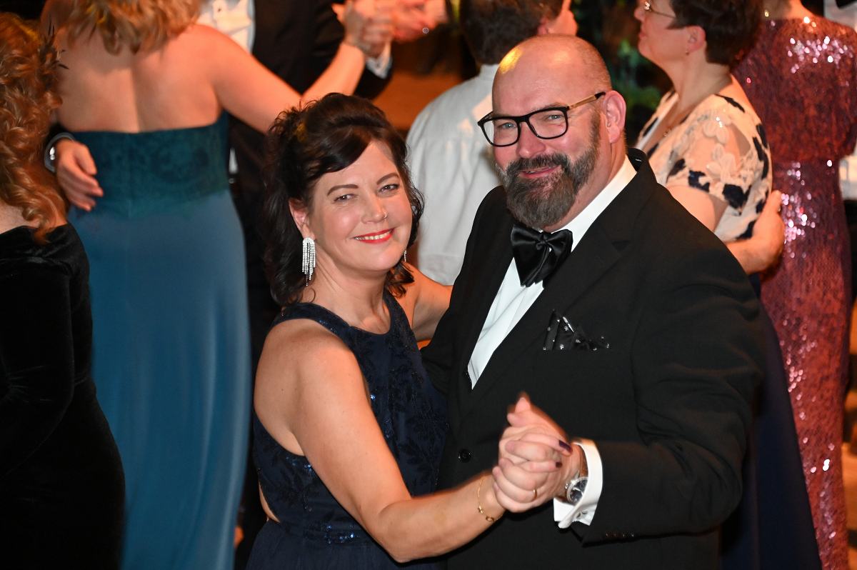 Doch statt Enttäuschung folgte Begeisterung: Ball-Besucher Daniel Hesse von der Tanzschule Hesse aus Heiligenstadt sprang spontan ein und „rettete“ den zweiten Hauptact. Mit einer Line-Dance-Vorführung, Animationen und einem eigenen Tanzpaar brachte Hesse die Stimmung zum Kochen. „Wir haben uns das aus den Fingern gesogen“, sagte er schmunzelnd und traf damit genau den Geschmack des Publikums. Besonders der Auftritt des Tanzpaares Diana und Michael aus Heiligenstadt zum Song „Pretty Woman“ sorgte für großen Applaus. Insgesamt war die Gruppe mit 26 Personen vertreten. Für Daniel Hesse schloss sich dabei ein Kreis: Bereits vor 15 Jahren hatte er in der Stadthalle Beverungen Tanzkurse gegeben. Seine Verbundenheit zum Kulturball sei bis heute geblieben. Für die musikalische Begleitung sorgten Jürgen Becker und seine Amorados Showband. Die achtköpfige Formation überzeugte erneut mit ihrer großen musikalischen Bandbreite und direkter Publikumsnähe. Die Tanzfläche blieb daher durchgehend gut gefüllt, wenn sie vom Walzer bis Disco-Fox mit einer großen Bandbreite an bester Ball-Musik begeisterten.