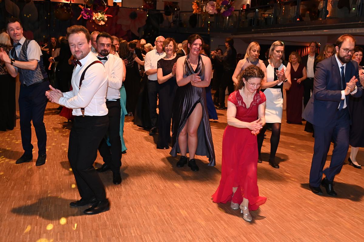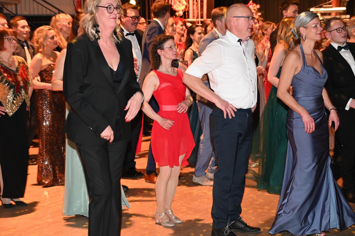 Beverungen (TKu). Ausverkaufte Stadthalle: Flexibilität gehörte in diesem Jahr ebenso zum Kulturball, wie die festliche Garderobe und die Tanzmusik der beliebten Amorados Showband. Beim 46. Kulturball in der Stadthalle Beverungen am vergangenen Samstagabend machte das Winterwetter eine kurzfristige Programmänderung erforderlich. Der geplante zweite Hauptact aus Bremen konnte wetterbedingt nicht anreisen, wie Schatzmeister Markus Hollenstein von der Kulturgemeinschaft Beverungen bei der Balleröffnung bekanntgeben musste. Für einen gelungenen Ersatz sorgten jedoch mehrere Line-Dancer und Tänzer, die als Besuchergruppe für spontane Darbietungen sorgten. Der Kulturball war erneut das Highlight der lokalen Kultursaison: Festliche Atmosphäre, elegante Gäste, stilvolle Dekoration und ein abwechslungsreiches Programm. Das engagierte Kulturballteam um Imke Groppe-Wille, Heike Hake, Beate Sagel, Alexandra Rüther, Eva Veigel und Anke Wellmann hatte monatelang geplant und präsentierte einen rundum gelungenen Abend. Insbesondere die Dekoration war im Wesentlichen bunter als die Jahre zuvor. Für ihre großartige Leistung und eine gelungene Dekoration dankte Markus Hollenstein von der Kulturgemeinschaft seiner Dekorations-Crew ganz herzlich auf der Bühne.