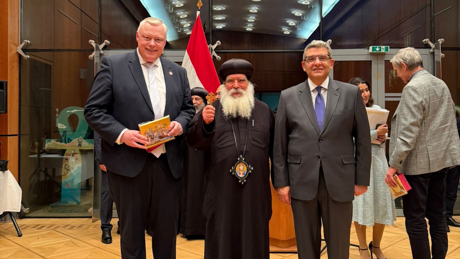Höxter/Berlin (red). Auf Einladung des Botschafters der Arabischen Republik Ägypten nahm Bürgermeister Daniel Hartmann am 10. Februar an einem feierlichen Empfang in der Ägyptischen Botschaft in Berlin teil. Anlass war die Würdigung der Ernennung von Bischof Anba Damian zum Metropoliten der koptischen Kirche.