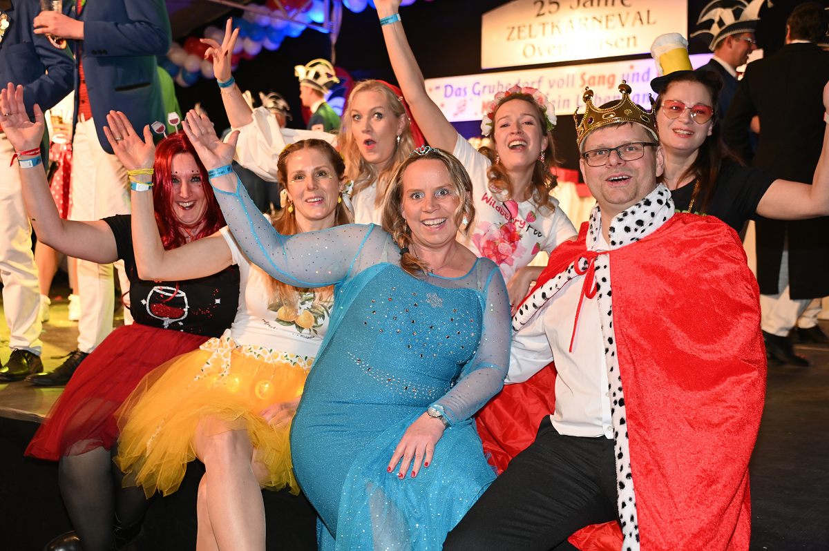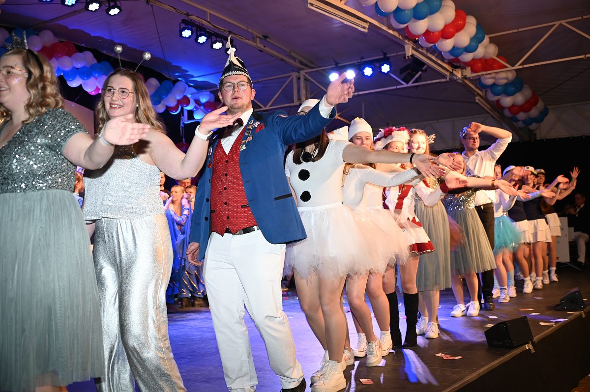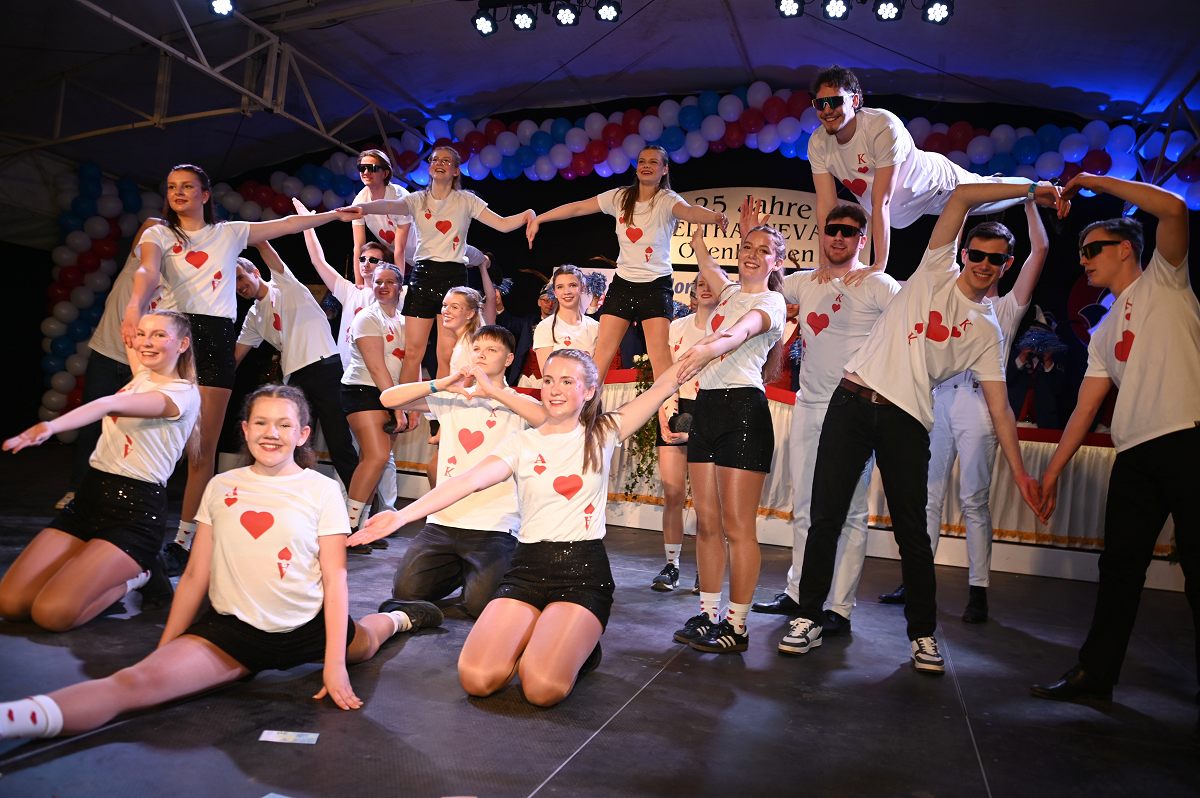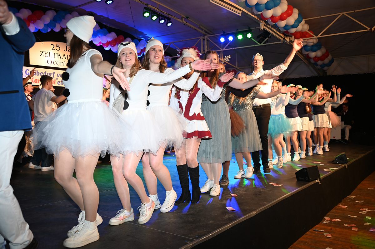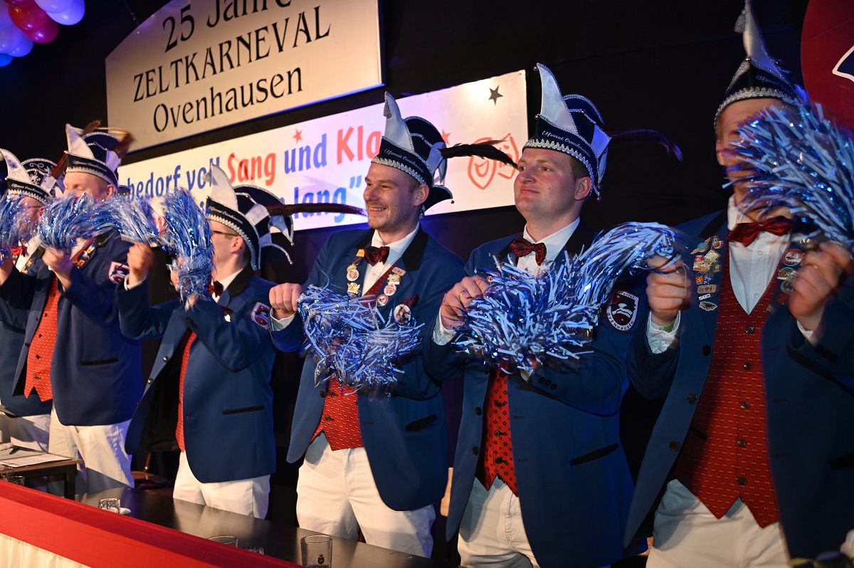 Ovenhausen (TKu). Der Büttenabend im Festzelt „Am Dreiort“ in Ovenhausen am Samstagabend war der zentrale Höhepunkt des Karnevalswochenendes im „Grubedorf“ Ovenhausen. Mehr als 1.111 Närrinnen und Narren füllten das Festzelt bis auf den letzten Platz und erlebten ein Programm, das von Tanz, Humor und der Würdigung ehrenamtlichen Engagements getragen wurde und das unter ständiger Moderation von Sitzungspräsident Jonas „Bone“ Behrenberg. Unter dem Motto „Das Grubedorf voll Sang und Klang – Karneval ein Leben lang“ zeigte sich, wie fest der Karneval in Ovenhausen verankert ist. Das Bühnenprogramm lebte vor allem von seiner tänzerischen Vielfalt. Mehrfach standen die Garden im Mittelpunkt: Die Teeny-Garde Ovenhausen überzeugte mit einem thematisch ausgearbeiteten Tanz, während die Prinzengarde Ovenhausen sowohl mit klassischem Gardetanz als auch später mit einem modernen Showtanz Akzente setzte. Ergänzt wurde das Programm durch die Ehrengarde Ovenhausen sowie die O-Town-Dancegroup, die mit ihrem Auftritt für zusätzlichen Applaus sorgte. Einen bewussten Kontrast bildete die Hip-Hop-Formation ExeQtive von Benny’s Danceschool, die moderne Elemente in das traditionelle Sitzungsformat einbrachte sowie ein Musikquiz.
