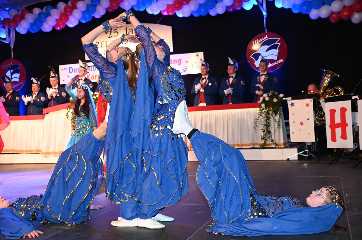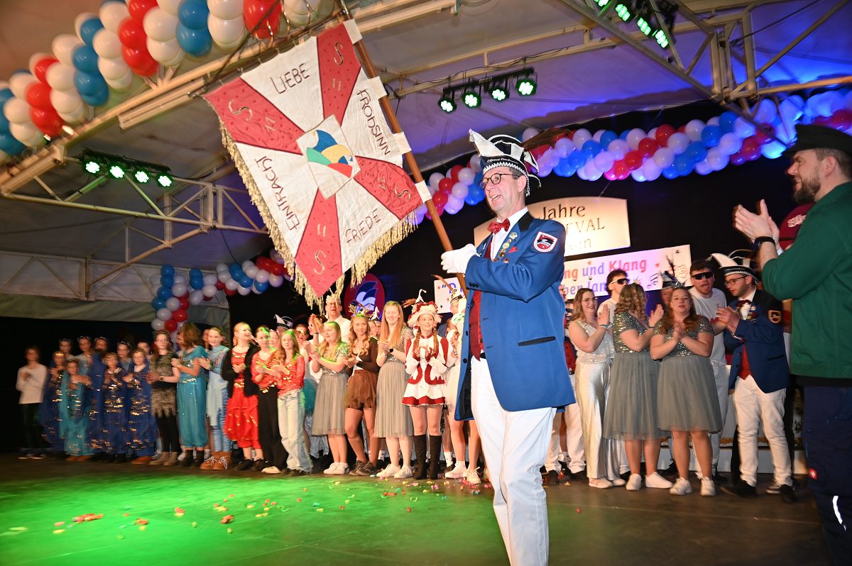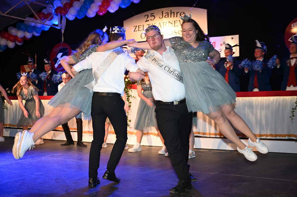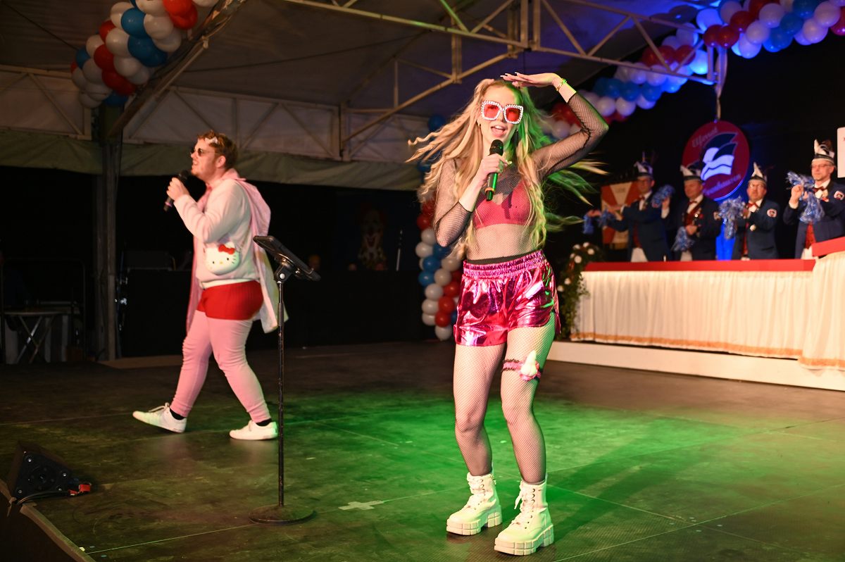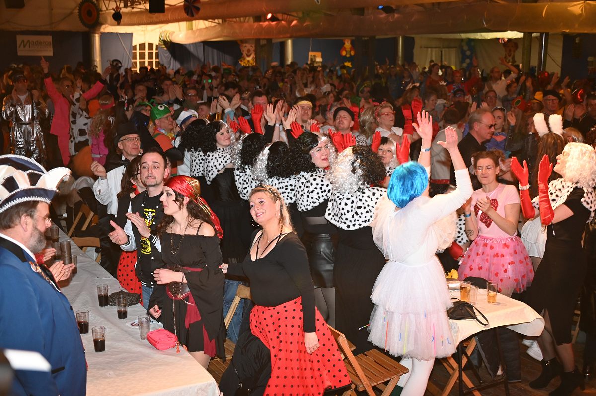 Ovenhausen (TKu). Der Büttenabend im Festzelt „Am Dreiort“ in Ovenhausen am Samstagabend war der zentrale Höhepunkt des Karnevalswochenendes im „Grubedorf“ Ovenhausen. Mehr als 1.111 Närrinnen und Narren füllten das Festzelt bis auf den letzten Platz und erlebten ein Programm, das von Tanz, Humor und der Würdigung ehrenamtlichen Engagements getragen wurde und das unter ständiger Moderation von Sitzungspräsident Jonas „Bone“ Behrenberg. Unter dem Motto „Das Grubedorf voll Sang und Klang – Karneval ein Leben lang“ zeigte sich, wie fest der Karneval in Ovenhausen verankert ist. Das Bühnenprogramm lebte vor allem von seiner tänzerischen Vielfalt. Mehrfach standen die Garden im Mittelpunkt: Die Teeny-Garde Ovenhausen überzeugte mit einem thematisch ausgearbeiteten Tanz, während die Prinzengarde Ovenhausen sowohl mit klassischem Gardetanz als auch später mit einem modernen Showtanz Akzente setzte. Ergänzt wurde das Programm durch die Ehrengarde Ovenhausen sowie die O-Town-Dancegroup, die mit ihrem Auftritt für zusätzlichen Applaus sorgte. Einen bewussten Kontrast bildete die Hip-Hop-Formation ExeQtive von Benny’s Danceschool, die moderne Elemente in das traditionelle Sitzungsformat einbrachte sowie ein Musikquiz.