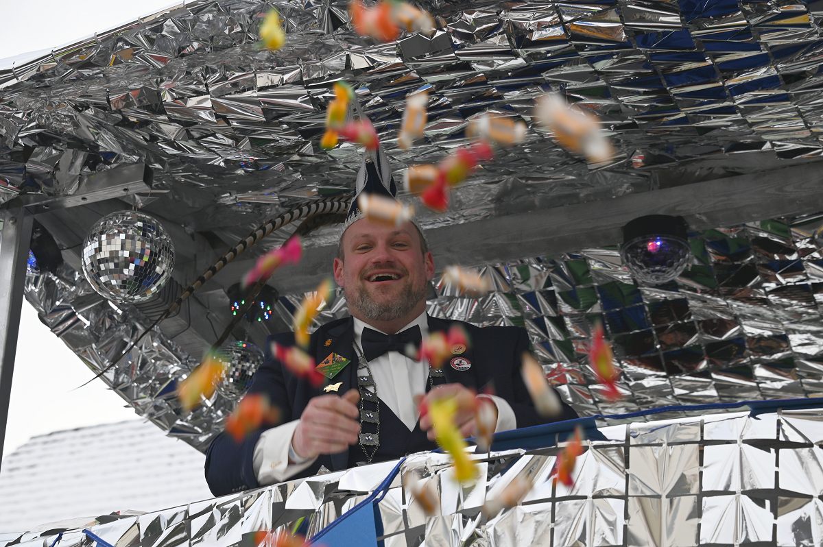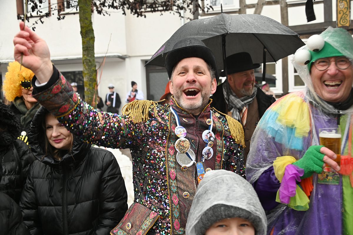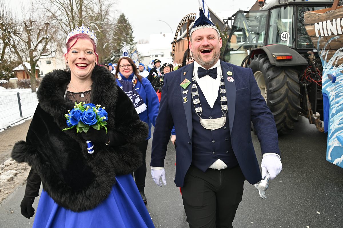 Tausende Jecken säumten die Straßenränder, ausgerüstet mit Beuteln und guter Laune, stets in der Hoffnung auf Kamelle, Konfetti und kleine Überraschungen. Für eine besondere, fast schon märchenhafte Note sorgte das Wetter: Mitten im Februar fielen zwischendurch tatsächlich ein paar Schneeflocken. Die Prinzenpaare hatten mit dem Rosenmontagsumzug auch ihren letzten großen Auftritt. Prinz Florian (Kastens), „der balearisch Regierende“, und Prinzessin Carena (Zarnitz), „die ewig Marschierende“, verabschiedeten sich gemeinsam mit dem Kinderprinzenpaar Till (Marx), „der fröhlich Kreative“, und Prinzessin Johanna (Kleinschmidt), „die glitzernd Aktive“, vom närrischen Volk. Insgesamt nahmen über 50 Wagen, Fußgruppen und Musikzüge teil: von Spielmannszügen aus der Region über Garden, Elferräte und Fantasiegruppen bis hin zu Sicherheitswagen und dem Deutsches Rotes Kreuz, das für einen sicheren Ablauf sorgte. Nach dem Umzug wurde in und an der Stadthalle Beverungen ausgelassen weitergefeiert.