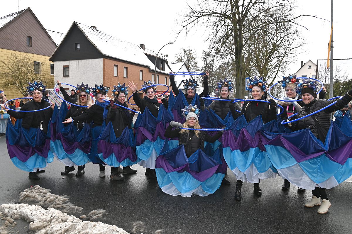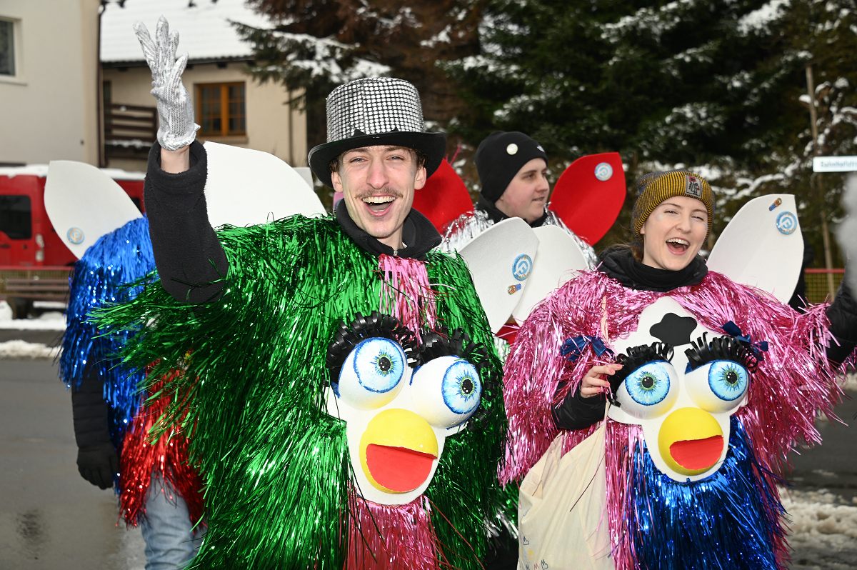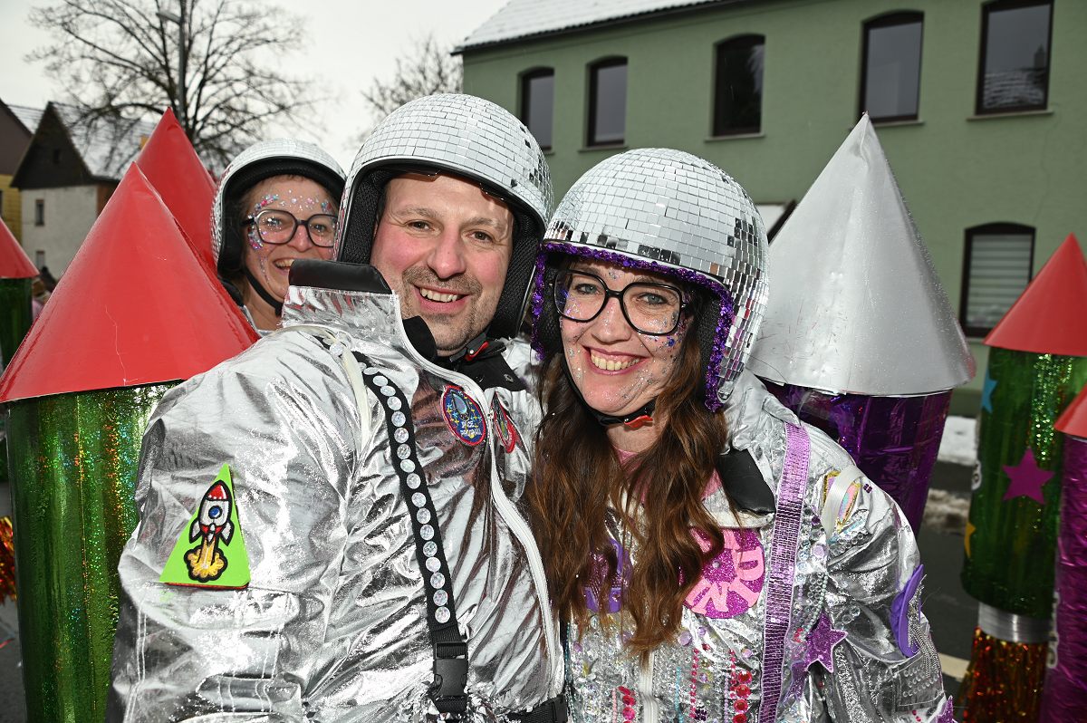 Beverungen/Lauenförde (TKu). Ganz im Zeichen des Mottos „Der CVWB glitzert grenzenlos – im Dreiländereck ist richtig was los!“ verwandelten sich Lauenförde und Beverungen am Rosenmontag in ein funkelndes Karnevalsmeer. Der große Jubiläumsumzug des Carnevalsverein Weserbrücke e.V. (CVWB) markierte den Höhepunkt der Session und zugleich das 50-jährige Bestehen des Vereins. Hunderte Meter lang zog sich der farbenprächtige Lindwurm von der Würgasser Straße durch Lauenförde, weiter über die Weserbrücke bis zur Stadthalle Beverungen. Angeführt vom Prinzenwagen des CVWB mit Prinz Florian (Kastens), „der balearisch Regierende“, und Prinzessin Carena (Zarnitz), „die ewig Marschierende", präsentierten sich die Umzugsteilnehmenden fantasievoll und detailverliebt: Raketen, glitzernde Phantasievögel, Schneekristalle, Cowboys, Hexen, Discogruppen und sogar festlich geschmückte Weihnachtsbäume sorgten für staunende Gesichter.