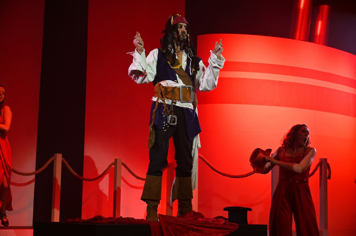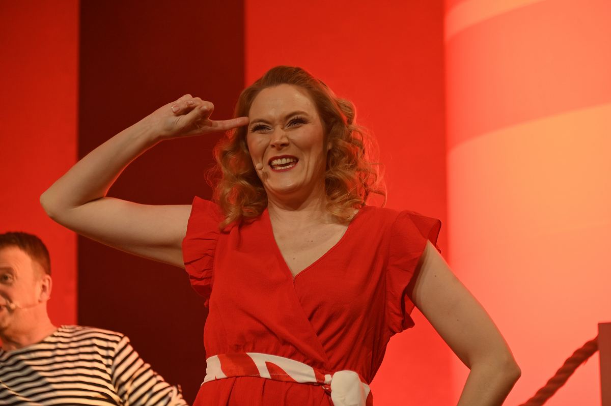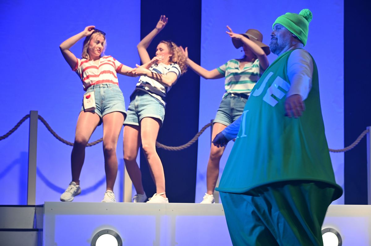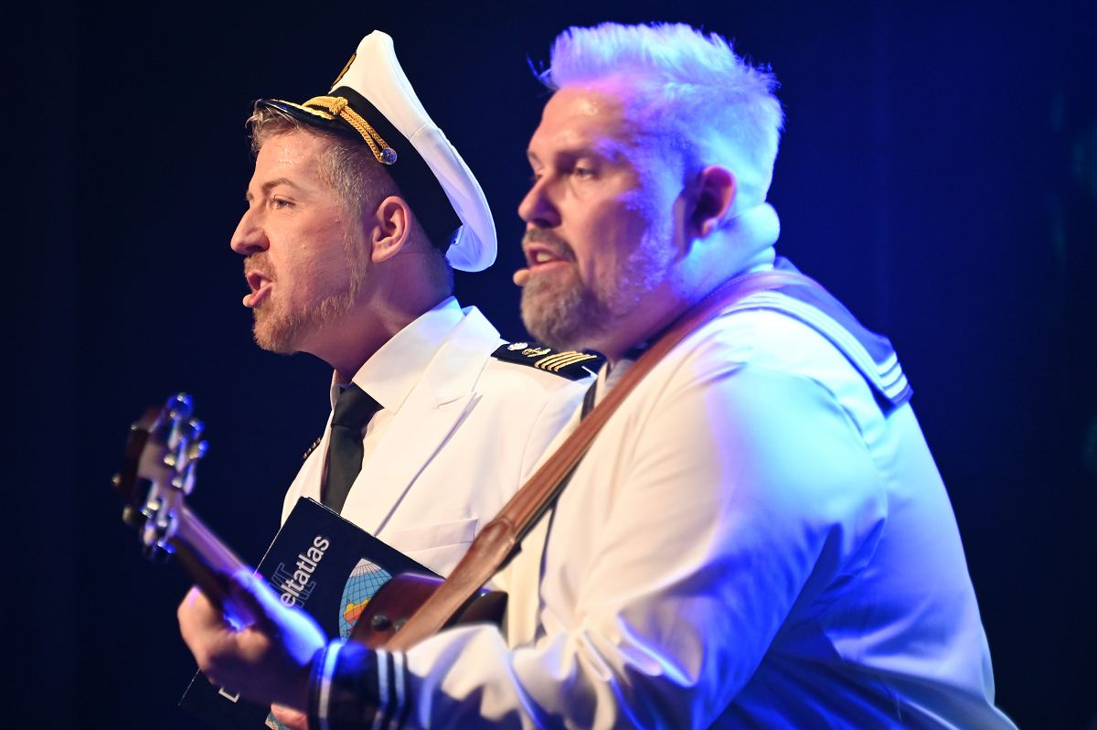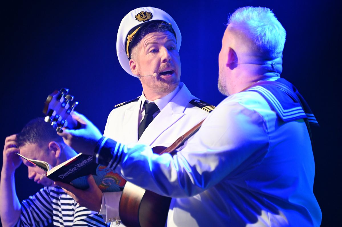 Auf der Bühne überzeugte ein großes Ensemble aus erfahrenen Darstellerinnen und Darstellern sowie neuen Gesichtern. Zu sehen waren Birgit Auel, Thomas Golüke, Sandra Hake, Sebastian Hegener, Pia Hermanns, Martin Klinkemeier, Sergej Rau, Björn Schwarzer, Maria Sievers und Carina Stickel. Frischen Wind brachten zudem Mika Germa, Xenia Heidebrecht, Alina Schmieder und Ida Sonnemann, die gemeinsam mit dem Ensemble glänzten. In zweieinhalb Stunden geht es in der Stadthalle einmal rund um die Welt, möglich gemacht durch das Kreuzfahrtschiff des Schlosstheaters. Nach dem Einchecken führt Kapitän Björn Tegeler das Publikum von Italien über Ägypten und Afrika bis nach Südamerika und New York, bevor es wieder zurück in heimische Gewässer geht. Im Mittelpunkt stehen dabei nicht nur die Reiseziele, sondern auch das Leben an Bord: Szenen in der Barbara Bar, sportliche Einlagen im Fitnessstudio („Bauch, Beine, Po“), Zauberkunst und humorvolle Begegnungen mit skurrilen Bojen und Leuchttürmen sorgen immer wieder für Schmunzeln und Lacher.