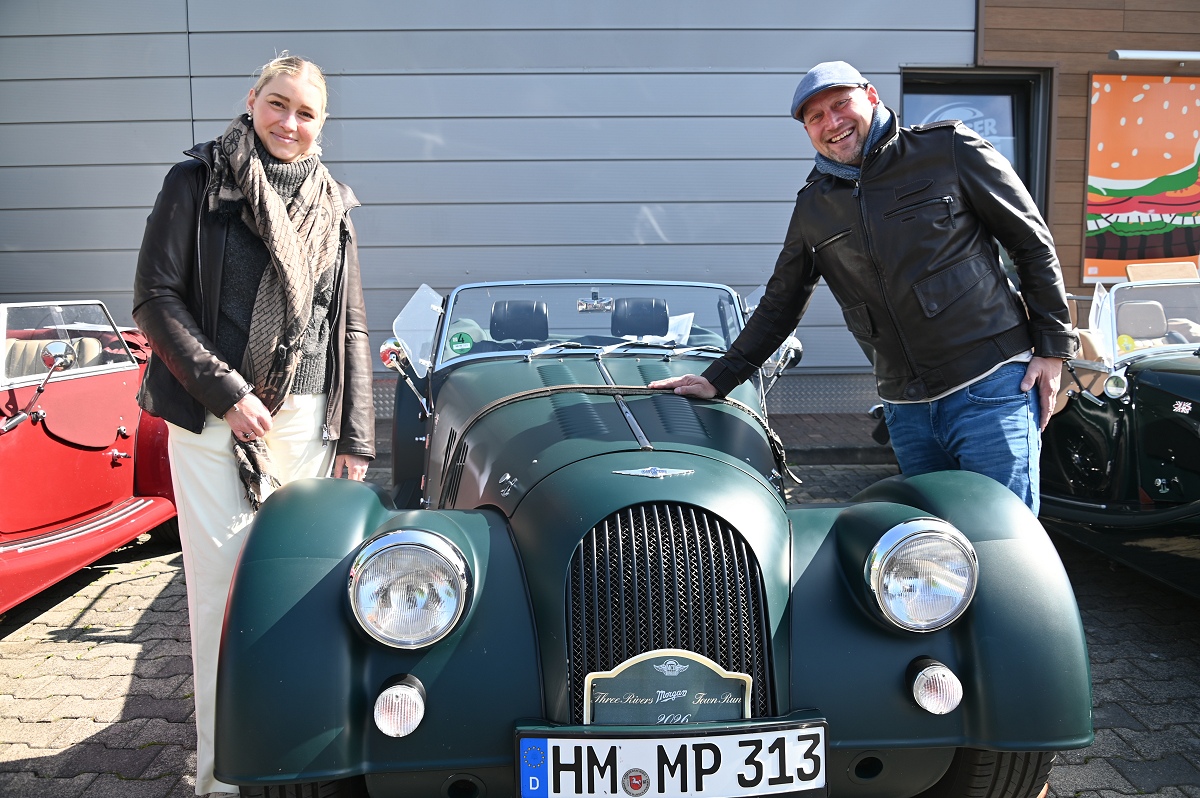 Ein deutlich jüngeres Modell brachte Marco Pietruszak mit: Sein Morgan Roadster „Brooklands Edition“ aus dem Jahr 2014 gehört zu einer weltweit auf 50 Exemplare limitierten Serie. „Jedes Fahrzeug ist nummeriert und entsprechend bei Sammlern gefragt“, erklärt Pietruszak. Sein Wagen hebt sich durch eine individuell konfigurierte matte Lackierung hervor und gilt damit als Einzelstück. Für ihn verbindet das Fahrzeug klassische Optik mit moderner Zuverlässigkeit: „Ich wollte immer einen Oldtimer – aber ohne die typischen Nachteile älterer Autos, weil mir dafür Zeit und Schrauberkenntnisse fehlen.“