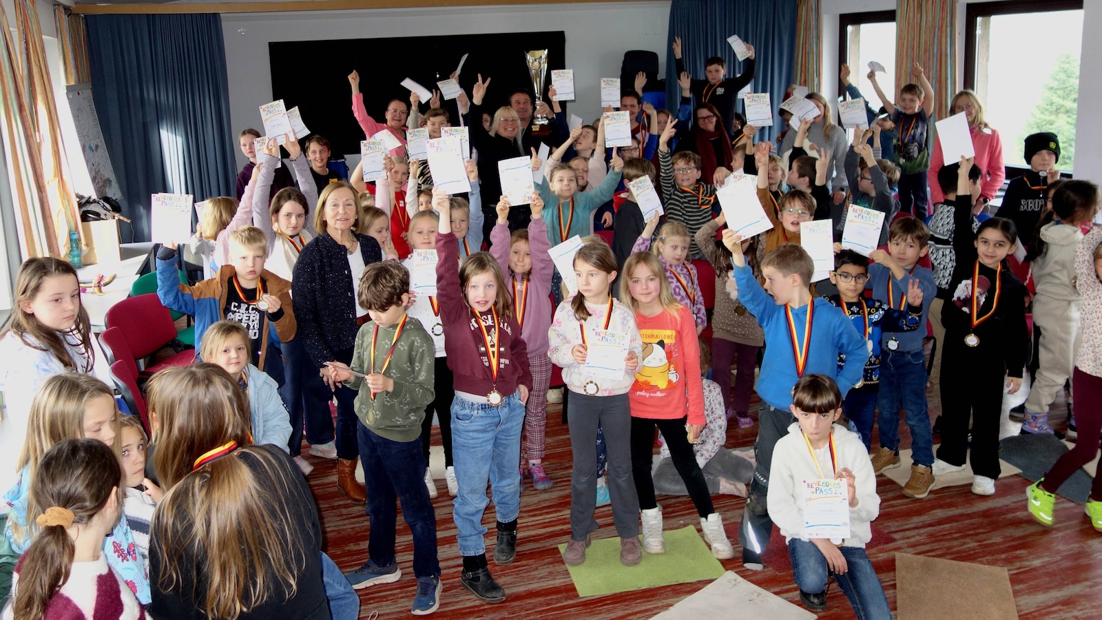 Der Jubel an der Grundschule in Hehlen war groß, denn die jungen Schülerinnen und Schüler haben den Wanderpokal der Grundschulen gewonnen! Bei ausgelassener Stimmung hat Irmgard Schrader vom KSB-Vorstand den Pokal überreicht. „Wir sind sehr froh, dass wir mit dem Bewegungspass kreisweit dazu beitragen können, mehr Bewegung in den Alltag zu integrieren. Gleichzeitig haben die Kinder die Möglichkeit, die Sportvereine in ihrer Umgebung kennenzulernen“, sagte Schrader bei der Siegerehrung in Hehlen. Urkunden und Medaillen hat sie auch in der Astrid-Lindgren-Schule in Holzminden verteilt, von der 190 Schülerinnen und Schüler teilgenommen haben. „Unser Ziel für nächstes Jahr ist eine Steigerung bei den Teilnehmerzahlen, wir würden uns sehr freuen, wenn noch mehr Grundschulen und Kindergärten an dieser großartigen Aktion teilnehmen“, so Schrader.