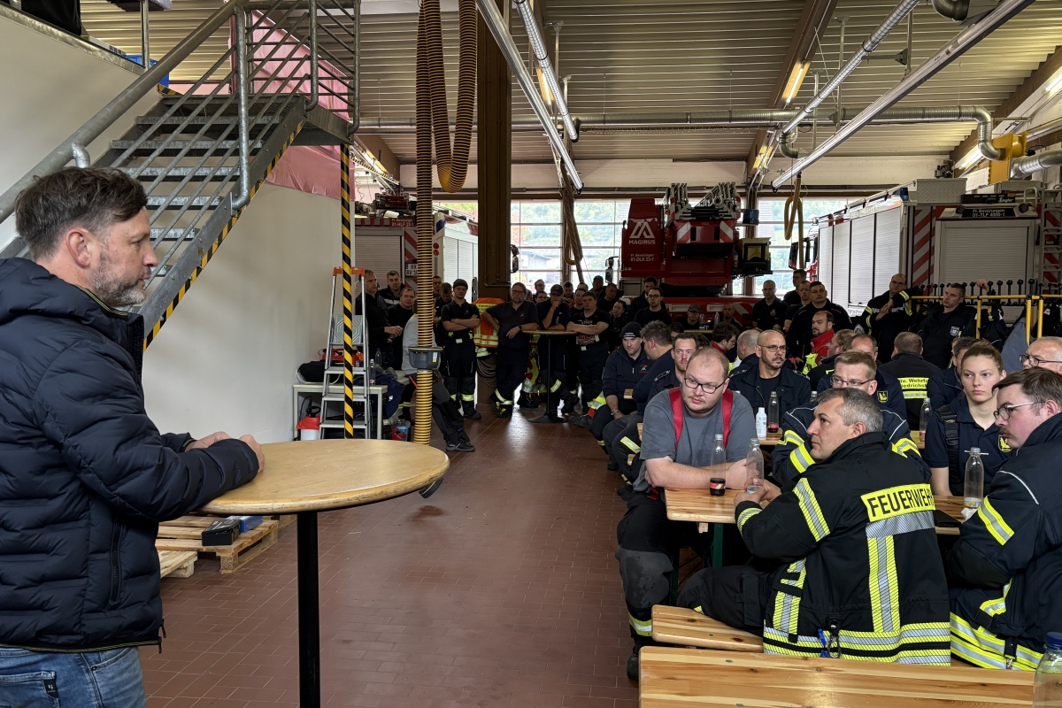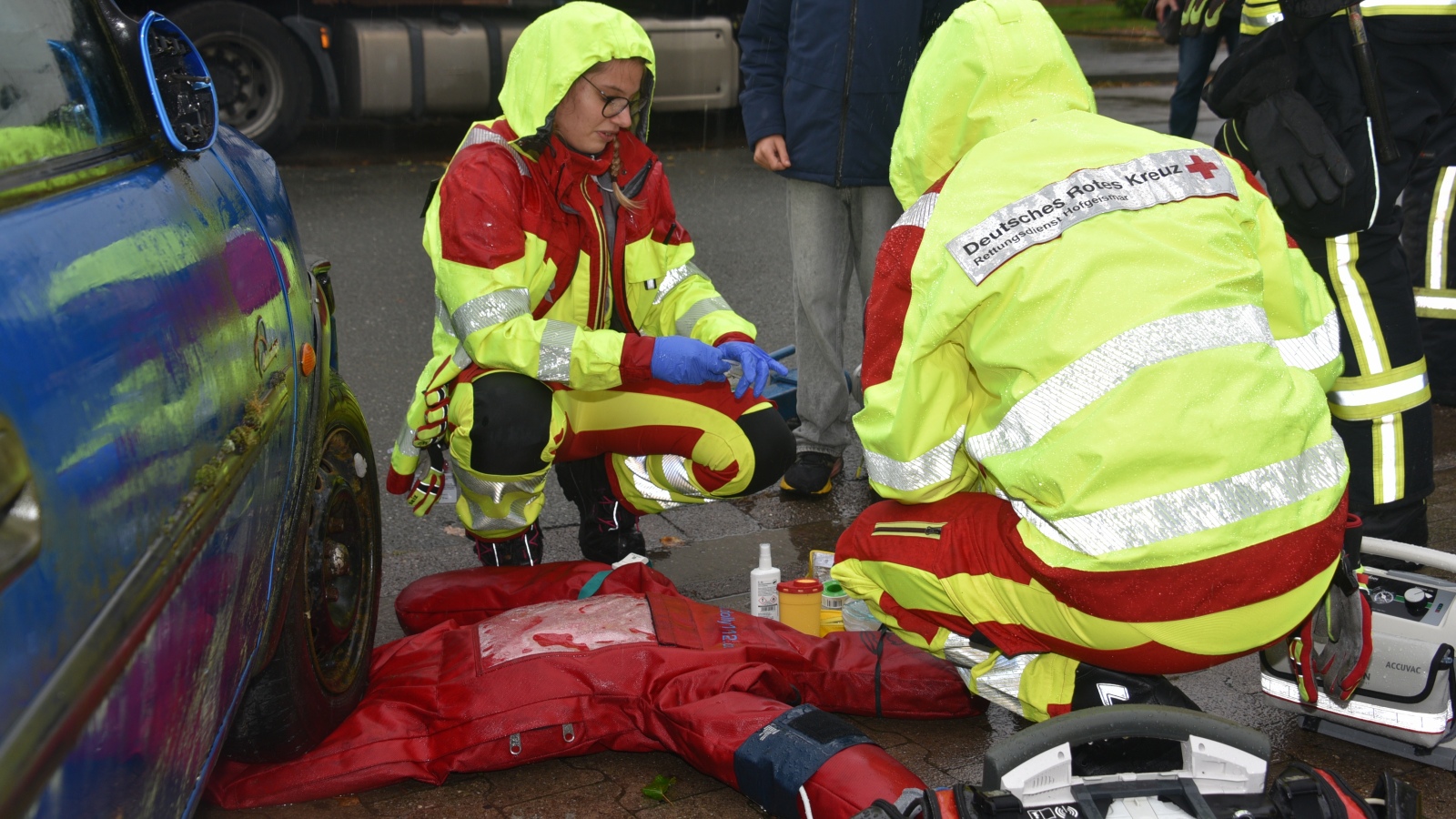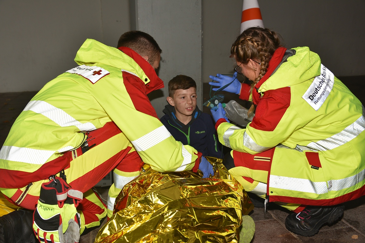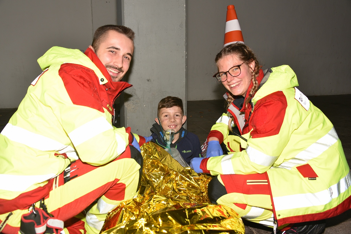 Die Übung war in vier Szenarien gegliedert, die an unterschiedlichen Orten in Beverungen und Dalhausen stattfanden. Bei einer Übung im Industriegebiet Beverungen mussten die Einsatzkräfte ein Kind retten, das unter einem Pkw eingeklemmt war. Da passendes technisches Gerät nicht verfügbar war, stand die Feuerwehr vor einer kniffligen Aufgabe und musste mit dem vorhandenen Material improvisieren. Parallel kümmerte sich der Rettungsdienst um die Versorgung des kleinen Patienten. „Für sie eine besondere Herausforderung, da Medikamente bei Kindern exakt nach Körpergewicht dosiert werden müssen“, sagt der Feuerwehr-Ausbilder und Notfallsanitäter Jan Nolte, der für dieses Szenario verantwortlich war und auch seine Kinder Lennart (10) und Jonathan (7) als vom Einsatz betroffene Kinder eingebunden hat. Ein weiteres Szenario führte die Kräfte in die verwinkelten Versorgungsgänge der Stadthalle Beverungen, in dem eine Brandmeldeanlage ausgelöst hatte. Die Ursache: Ein Brand mit einer starken Verrauchung in einem Technikraum. „Unbekannte Fluchtwege und die Orientierung über Feuerwehrpläne machten die Lage anspruchsvoll“, erklärte Alexander Bönning. Während die Feuerwehr im Inneren tätig war, blieb der Rettungsdienst in Bereitschaft und musste nachher doch noch einen kleinen Patienten mit einer Rauchgasvergiftung behandeln.