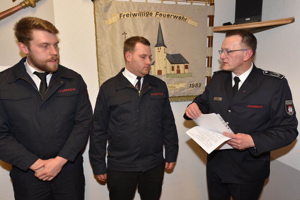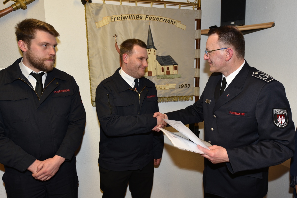Fürstenau (TKu). Ein Generationswechsel prägte die Jahreshauptversammlung der Löschgruppe Fürstenau von der Freiwilligen Feuerwehr Höxter. Nach fast 20 Jahren gemeinsamer Führungsverantwortung legten Löschgruppenführer Jörg Voss und sein Stellvertreter Manuel Bergmann ihre Ämter in jüngere Hände. Verabschiedet wurden die beiden Hauptbrandmeister durch den stellvertretenden Leiter der Feuerwehr Höxter, Rainer Höppner. Die Führungsverantwortung liegt in der Familie: Zum neuen Löschgruppenführer wurde Brandmeister Maurice Voss von Rainer Höppner ernannt, der Sohn von Jörg Voss. Komplettiert wird die neue Führungsspitze durch den Löschgruppenführer-Stellvertreter Sven Warneke, der diese Funktion bereits zuvor innerhalb des zurückgetretenen Führungstrios innehatte.