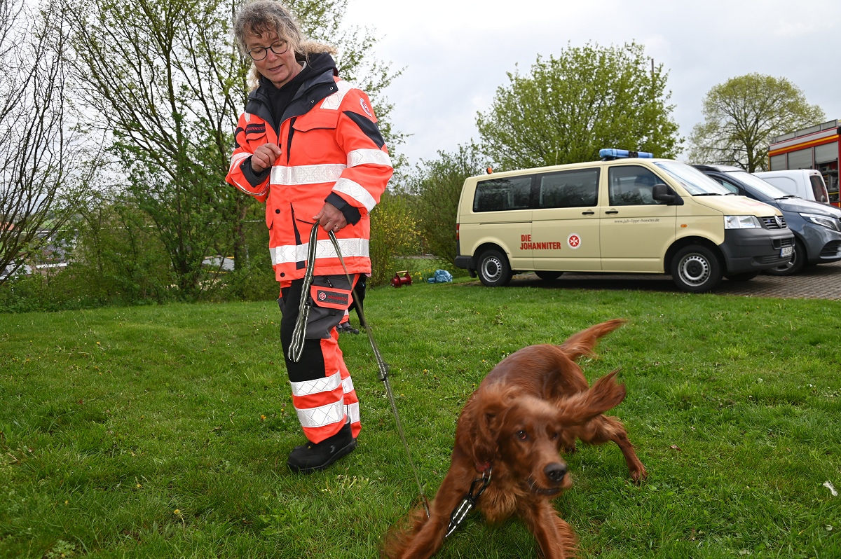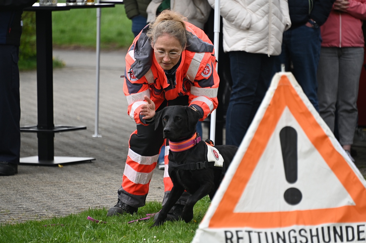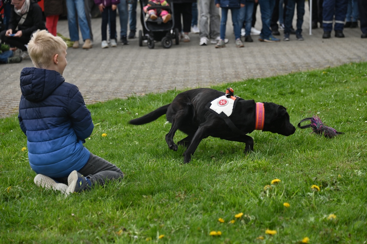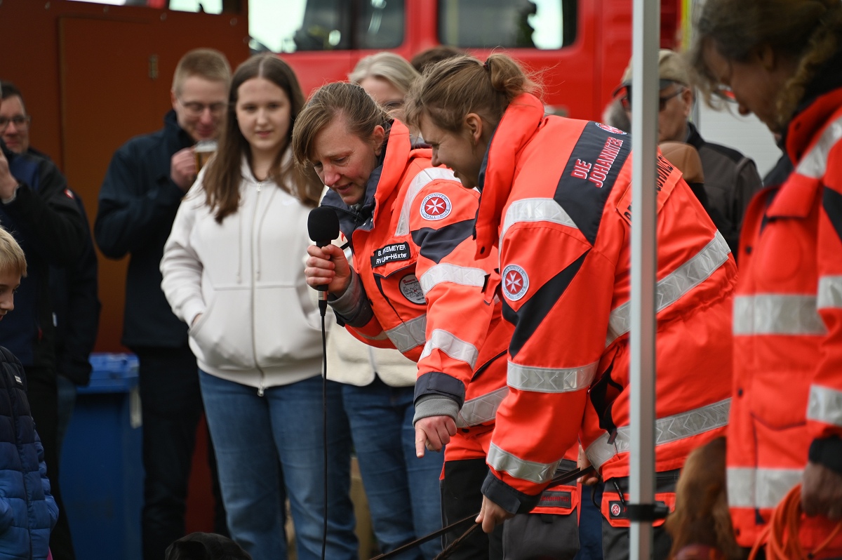 Ein besonderer Anziehungspunkt waren die Vorführungen und eine kleine Fahrzeugschau. Neben den Einsatzfahrzeugen der örtlichen Kräfte aus Bödexen und Fürstenau präsentierte der Löschzug Höxter unter anderem seine Drehleiter sowie seinen Rüstwagen. Auch der Einsatzleitwagen 2 des Kreises Höxter war vor Ort und stellte seine neue Drohnenstaffel vor, die bei Einsätzen zunehmend an Bedeutung gewinnt. Ergänzt wurde das Programm durch die Rettungshundestaffel Höxter-Lippe, die mit einer Vorführung eindrucksvoll ihr Können demonstrierte. Unter der Federführung von Hundeführerin Jutta Sprenger gewährte die Hundestaffel Einblicke in die Ausbildung der Rettungshunde und demonstrierte das Anzeigen von Personen mit dem sogenannten „Verbellen“, wie es der Fall ist, wenn eine Person beispielsweise im Wald durch den Hund aufgefunden wird.