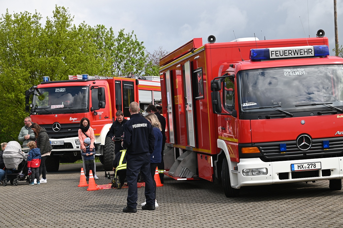 Bödexen (TKu). Zahlreiche Besucher nutzten am Sonntag die Gelegenheit, einen Blick hinter die Kulissen der Löschgruppe Bödexen der Freiwilligen Feuerwehr der Stadt Höxter zu werfen. Beim „Tag des offenen Tores“ erwartete die Gäste ein abwechslungsreiches Programm für die ganze Familie mit Informationen, Vorführungen und viel Unterhaltung. Für die passende musikalische Begleitung sorgten der Spielmannszug Bödexen sowie die Blaskapelle Bödexen, die die Veranstaltung bereits zu Beginn stimmungsvoll umrahmten. Bei Kaffee und Kuchen konnten sich die Besucher stärken und gleichzeitig das Geschehen auf dem Gelände verfolgen.