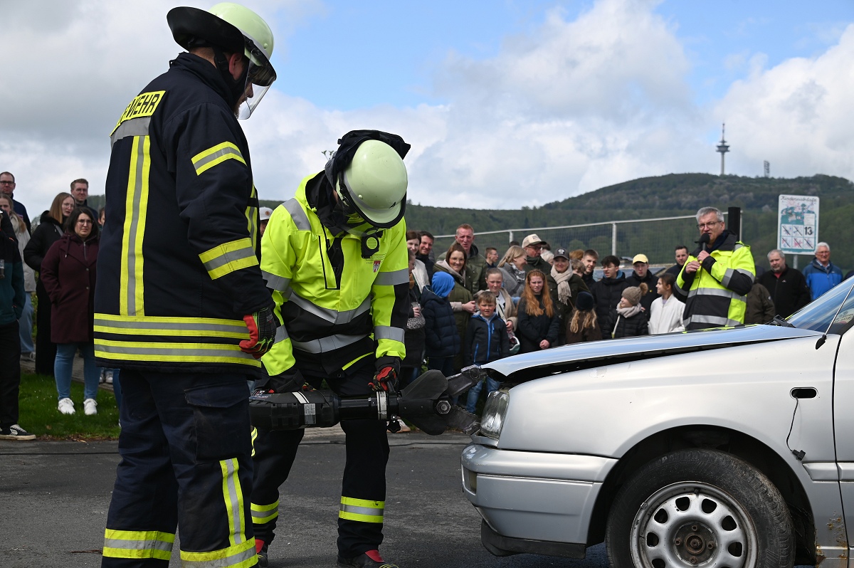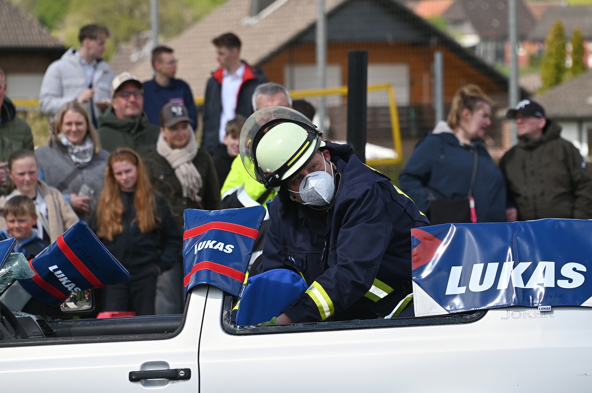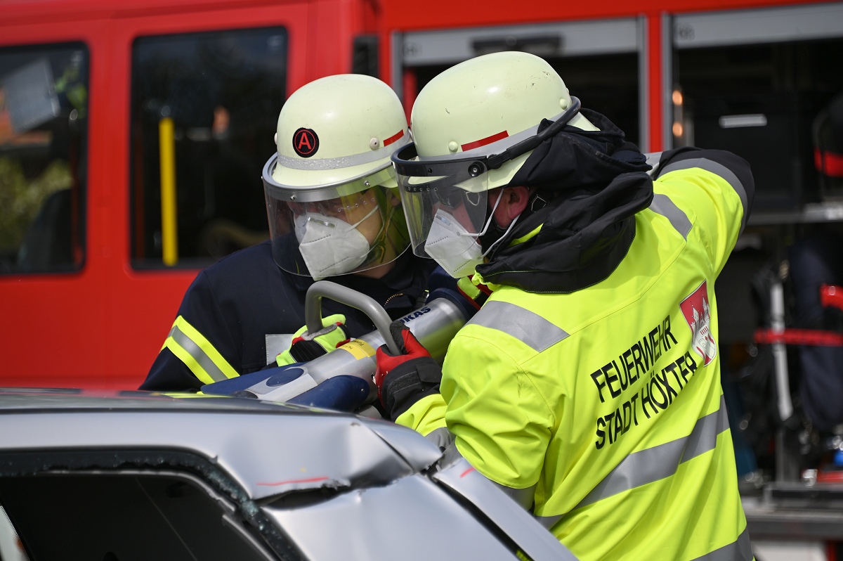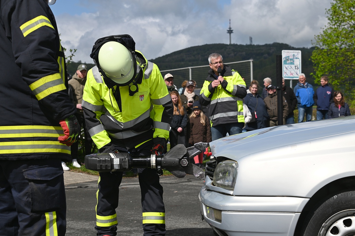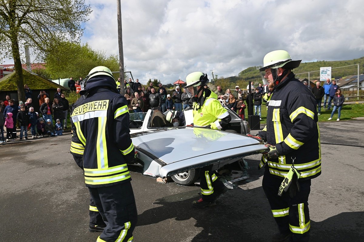 Großes Interesse zog zudem eine realitätsnahe Einsatzübung auf dem Schützenplatz auf sich. Die Löschgruppe Fürstenau zeigte gemeinsam mit dem Löschzug Höxter, wie die Feuerwehr bei einem Verkehrsunfall mit eingeklemmter Person vorgeht. Vor den Augen von dutzenden Zuschauern wurde ein ausgemusterter Pkw fachgerecht zerlegt, um eine schonende Rettung des „Verletzten“ zu ermöglichen. Dabei musste unter anderem das Fahrzeugdach entfernt werden, um die verunfallte Person aus dem Fahrzeug zu befreien. Auch personell gab es einen wichtigen Moment: Der stellvertretende Leiter der Feuerwehr Höxter, Rainer Höppner, nahm die Ernennung zweier Führungskräfte vor. Die Brüder Benedikt und Philipp Meise wurden für weitere sechs Jahre in ihren Funktionen als Löschgruppenführer bestätigt. Benedikt Meise bleibt Löschgruppenführer, während Philipp Meise weiterhin als sein Stellvertreter fungiert.