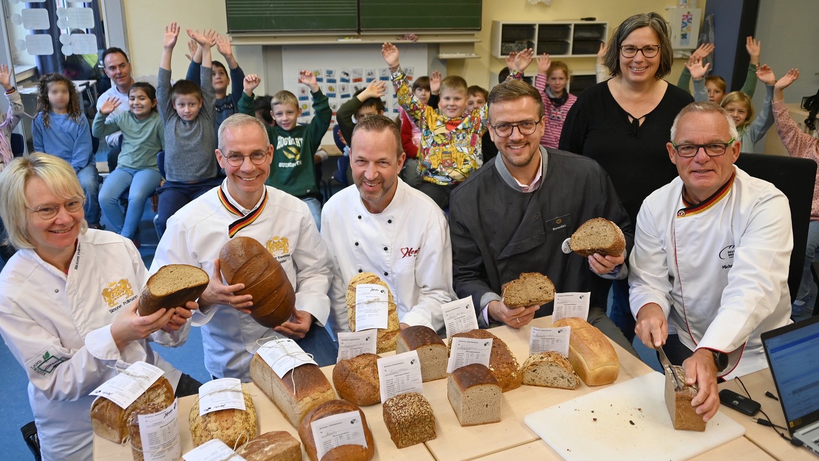 Die Idee, den Brottest in die Schule zu holen, stammt von Ansgar Krawinkel. Schulleiterin Bettina Becker war sofort hell auf begeistert, denn das Thema passte noch dazu perfekt zum Unterrichtsstoff der dritten Klasse, der die aktuelle Überschrift „Vom Getreide zum Brot“ trägt. „Die Kinder erfahren hier, wie viel Wissen und Handarbeit in einem einfachen Laib Brot stecken“, sagte sie. Am Ende waren sich der Fachmann und die Klassen einig: Brot kann so viel mehr sein als nur ein Grundnahrungsmittel, „es ist ein Stück Kultur, Handwerk und Leidenschaft“, sagte Isensee, der auch dafür warb, beim heimischen Bäcker einzukaufen anstatt beim Discounter, damit es den „Bäcker vor Ort“ auch in zehn Jahren noch gibt. Die Ergebnisse dieser Brottestung werden später auch online unter www.brotinstitut.de einsehbar sein.