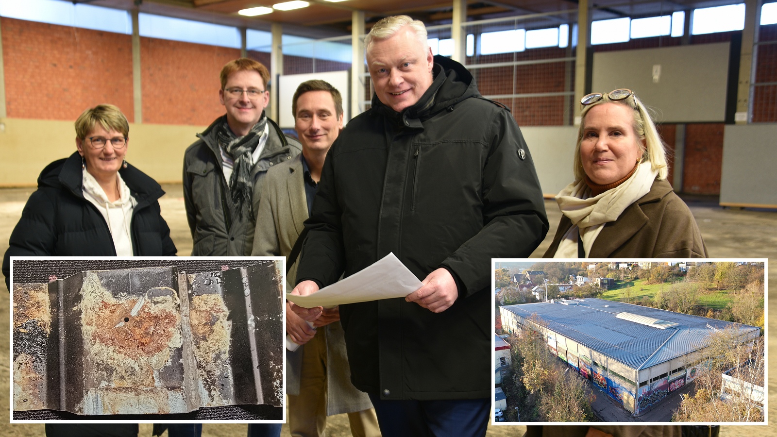 Höxter (TKu). Die Komplettsanierung der Bielenberghalle schreitet voran, allerdings langsamer als ursprünglich geplant. Der Zeitplan musste aufgrund unerwartet großflächiger Schäden, vor allem im Dachbereich, verschoben werden. „Wir wollten 2025 eigentlich schon viel weiter sein“, erklärte Baudezernentin Julia Gogrewe bei einem Vor-Ort-Termin zusammen mit Bürgermeister Daniel Hartmann, dem projektverantwortlichen Architekten Alexander Titze von der Hochbauabteilung, Claudia Pelz-Weskamp, Leiterin der Abteilung Schulen, Bücherei und Sport, sowie Architekt Kai Bickmeier vom beauftragten Planungsbüro b2p aus Holzminden. Trotz der Herausforderungen bleibe die Stadt im vorgesehenen Gesamtbudget von 4,7 Millionen Euro. Dass dies trotz der massiven Dachprobleme gelinge, liege laut Alexander Titze daran, dass andere Gewerke günstiger ausfielen, als kalkuliert. Der Bund beteiligt sich an der Sanierung mit 1,5 Millionen Euro, insbesondere zur Verbesserung der Barrierefreiheit.