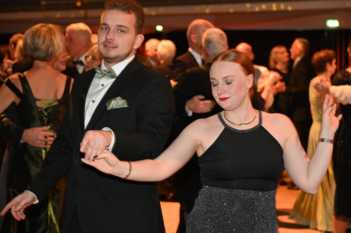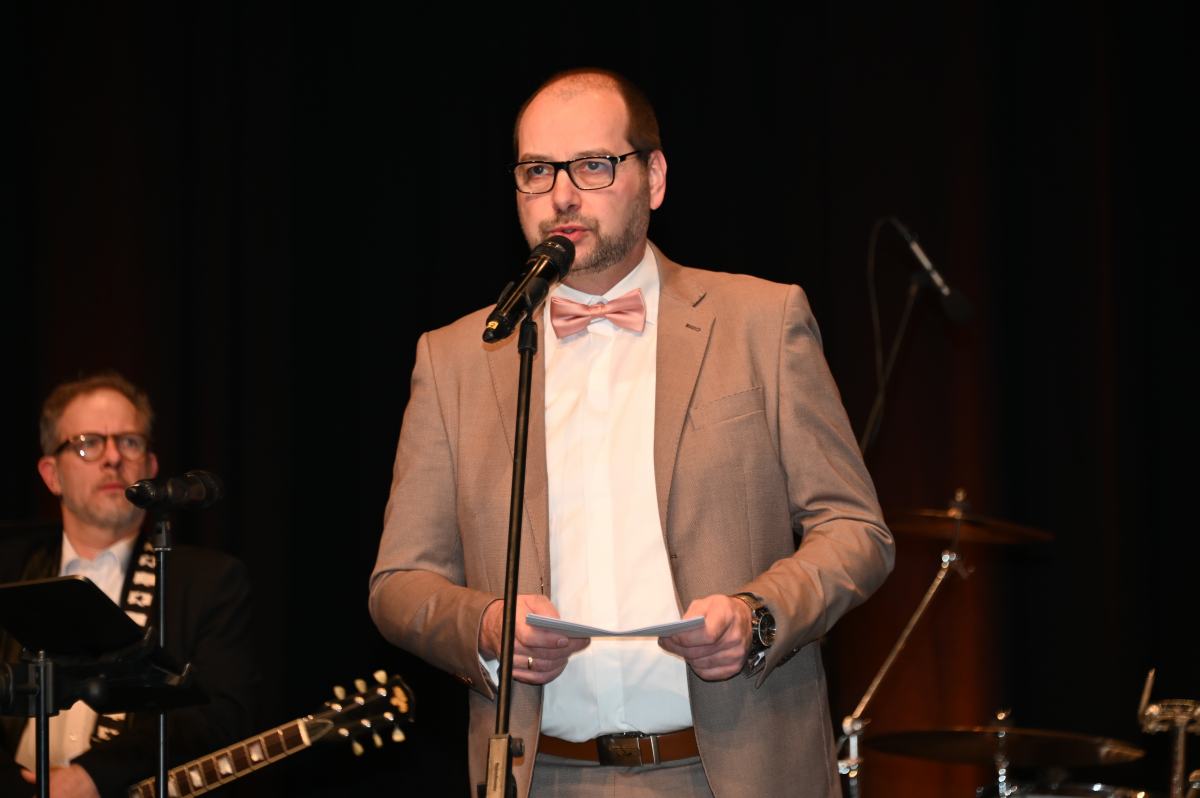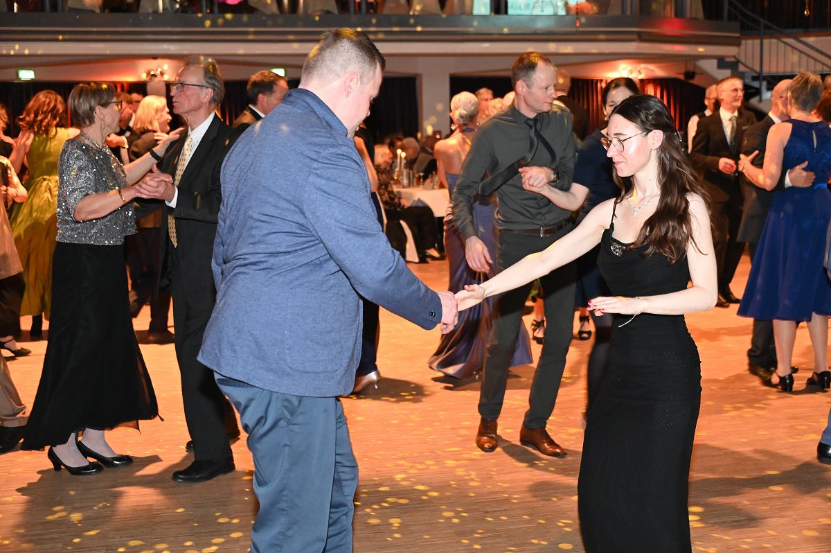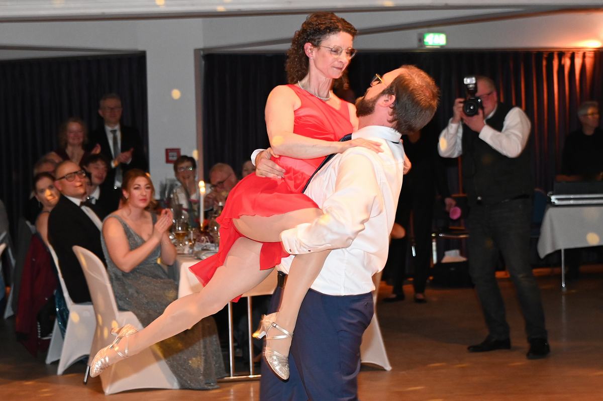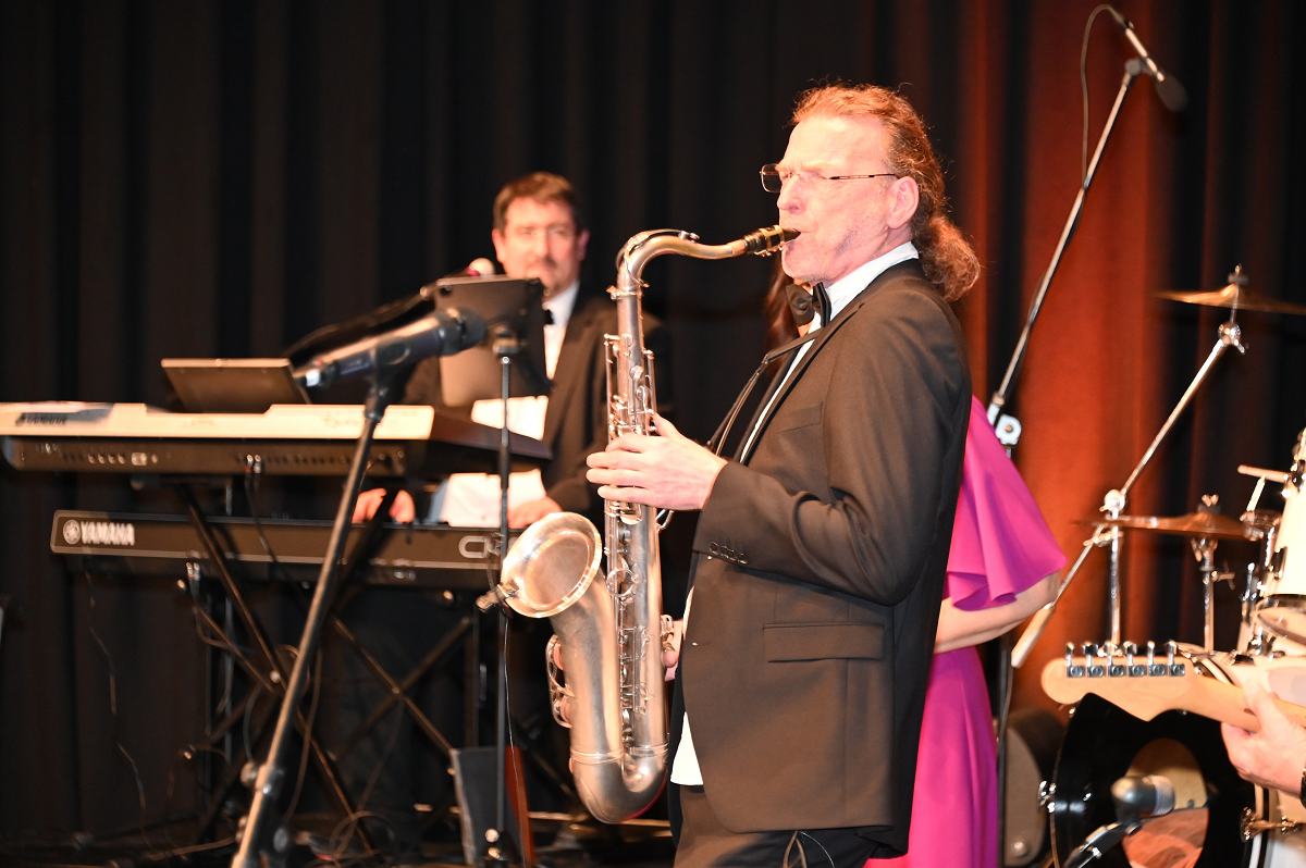 Doch statt Enttäuschung folgte Begeisterung: Ball-Besucher Daniel Hesse von der Tanzschule Hesse aus Heiligenstadt sprang spontan ein und „rettete“ den zweiten Hauptact. Mit einer Line-Dance-Vorführung, Animationen und einem eigenen Tanzpaar brachte Hesse die Stimmung zum Kochen. „Wir haben uns das aus den Fingern gesogen“, sagte er schmunzelnd und traf damit genau den Geschmack des Publikums. Besonders der Auftritt des Tanzpaares Diana und Michael aus Heiligenstadt zum Song „Pretty Woman“ sorgte für großen Applaus. Insgesamt war die Gruppe mit 26 Personen vertreten. Für Daniel Hesse schloss sich dabei ein Kreis: Bereits vor 15 Jahren hatte er in der Stadthalle Beverungen Tanzkurse gegeben. Seine Verbundenheit zum Kulturball sei bis heute geblieben. Für die musikalische Begleitung sorgten Jürgen Becker und seine Amorados Showband. Die achtköpfige Formation überzeugte erneut mit ihrer großen musikalischen Bandbreite und direkter Publikumsnähe. Die Tanzfläche blieb daher durchgehend gut gefüllt, wenn sie vom Walzer bis Disco-Fox mit einer großen Bandbreite an bester Ball-Musik begeisterten.