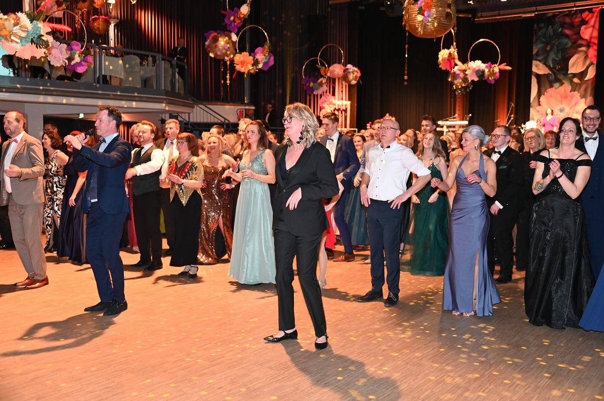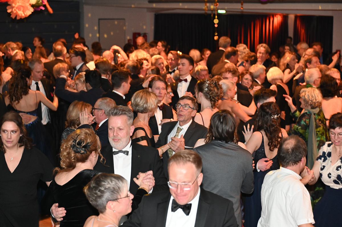 Beverungen (TKu). Ausverkaufte Stadthalle: Flexibilität gehörte in diesem Jahr ebenso zum Kulturball, wie die festliche Garderobe und die Tanzmusik der beliebten Amorados Showband. Beim 46. Kulturball in der Stadthalle Beverungen am vergangenen Samstagabend machte das Winterwetter eine kurzfristige Programmänderung erforderlich. Der geplante zweite Hauptact aus Bremen konnte wetterbedingt nicht anreisen, wie Schatzmeister Markus Hollenstein von der Kulturgemeinschaft Beverungen bei der Balleröffnung bekanntgeben musste. Für einen gelungenen Ersatz sorgten jedoch mehrere Line-Dancer und Tänzer, die als Besuchergruppe für spontane Darbietungen sorgten. Der Kulturball war erneut das Highlight der lokalen Kultursaison: Festliche Atmosphäre, elegante Gäste, stilvolle Dekoration und ein abwechslungsreiches Programm. Das engagierte Kulturballteam um Imke Groppe-Wille, Heike Hake, Beate Sagel, Alexandra Rüther, Eva Veigel und Anke Wellmann hatte monatelang geplant und präsentierte einen rundum gelungenen Abend. Insbesondere die Dekoration war im Wesentlichen bunter als die Jahre zuvor. Für ihre großartige Leistung und eine gelungene Dekoration dankte Markus Hollenstein von der Kulturgemeinschaft seiner Dekorations-Crew ganz herzlich auf der Bühne.