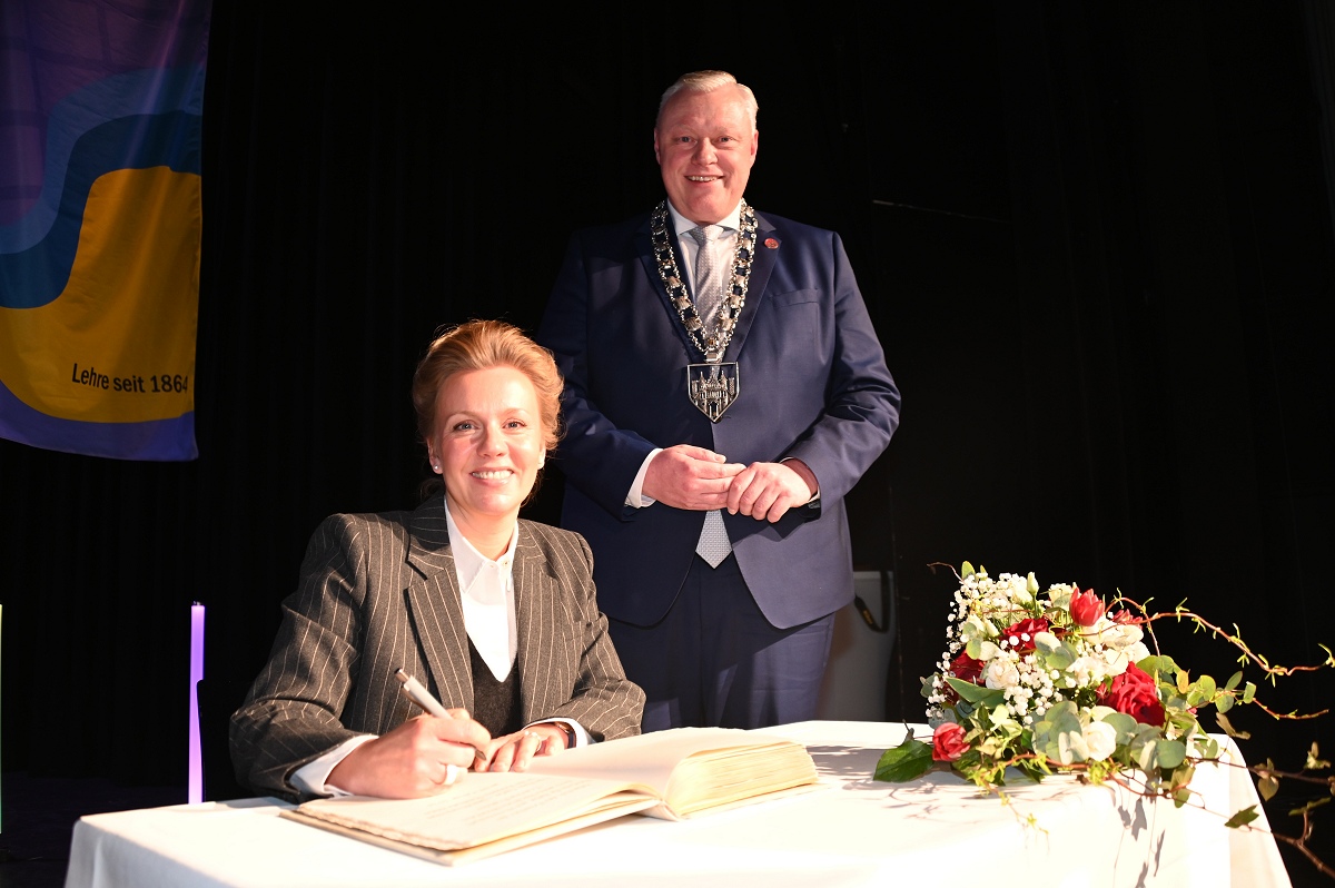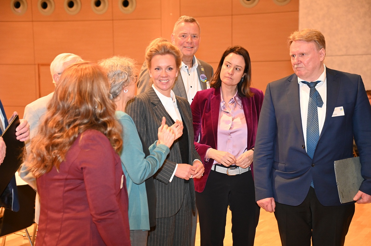 Veranstaltet wurde das Symposium vom Aktionskreis Lehre am Hochschulstandort Höxter. Ziel war es, ein deutliches Zeichen für die hohe Relevanz umweltbezogener Studiengänge und Forschungsaktivitäten am traditionsreichen Standort der Technischen Hochschule OWL zu setzen. Inhaltlich lag der Schwerpunkt insbesondere auf Wasser- und Gewässerschutz, Biodiversität und Klimafolgenanpassung. Die wissenschaftlichen Leiter, Professor Dr. Joachim Dohmann und Bernd Schackers, betonten, dass der interdisziplinäre Austausch praxisnahe und zugleich wissenschaftlich fundierte Perspektiven eröffne. Bereits vor der offiziellen Eröffnung nahm Ministerin Brandes an einem Rundgang durch die Ausstellung relevanter Umweltthemen teil, begleitet von der wissenschaftlichen Leitung sowie weiteren Repräsentanten aus Politik und Verwaltung. Anschließend trug sich die Ministerin in das Goldene Buch der Stadt Höxter ein, bevor Marlies Hemesoth von der Absolventen- und Förderervereinigung AFV Höxter e. V. den Startschuss für die Veranstaltung als erste Rednerin gab. Kreisdirektorin Manuela Kupsch würdigte in ihrer Ansprache die Bedeutung des Hochschulstandorts Höxter für die Umweltforschung und die nachhaltige Entwicklung der Region: Die große Resonanz mit fast 300 Teilnehmenden aus Nordrhein-Westfalen und weiteren Bundesländern sowie Repräsentanten aus Wirtschaft, Politik und Verwaltung sei ein starkes Zeichen für die Bedeutung umweltbezogener Studiengänge und Forschung. Kupsch weiter: „Das Hochschulpräsidium traf einst eine zukunftsorientierte Entscheidung und setzte die Weichen für diese Studiengänge am traditionsreichen Standort der Technischen Hochschule OWL. Ganz im Sinne der Nachhaltigkeit, die das Handeln von Klaus Töpfer prägte, wünschen wir uns auch heute kluge und zukunftsweisende Entscheidungen, um den Hochschulstandort mit umweltrelevanter Lehre und Forschung zu erhalten und weiterzuentwickeln.“ Kupsch hob hervor, dass der Kreis Höxter mit seinen zahlreichen Naturschutzgebieten und Projekten zur Aufwertung von Lebensräumen eine Vorreiterrolle im Umweltbereich einnehme. Sie betonte außerdem den Fachkräftebedarf für die Umweltverwaltung und die zentrale Bedeutung der Ausbildung junger Menschen in Umweltstudiengängen: „Klaus Töpfer hat junge Menschen stets darin bestärkt, sich für eine enkeltaugliche Welt einzusetzen, aber keinesfalls nur mit Protest. Er hat jungen Menschen gezeigt, wie sie die Zukunft im offenen Dialog mitgestalten können. Nachhaltiges Denken und Handeln, Kommunikation und Vermittlung zählten zu seinen Stärken.“