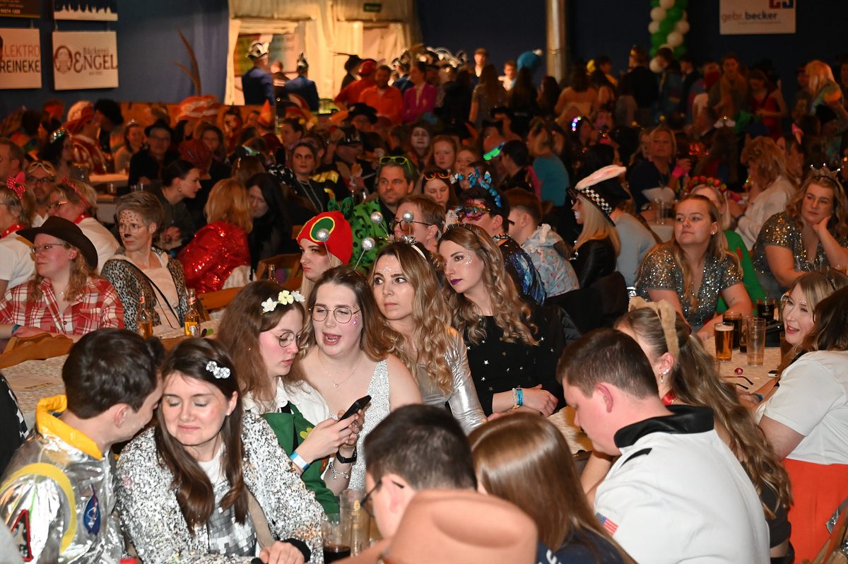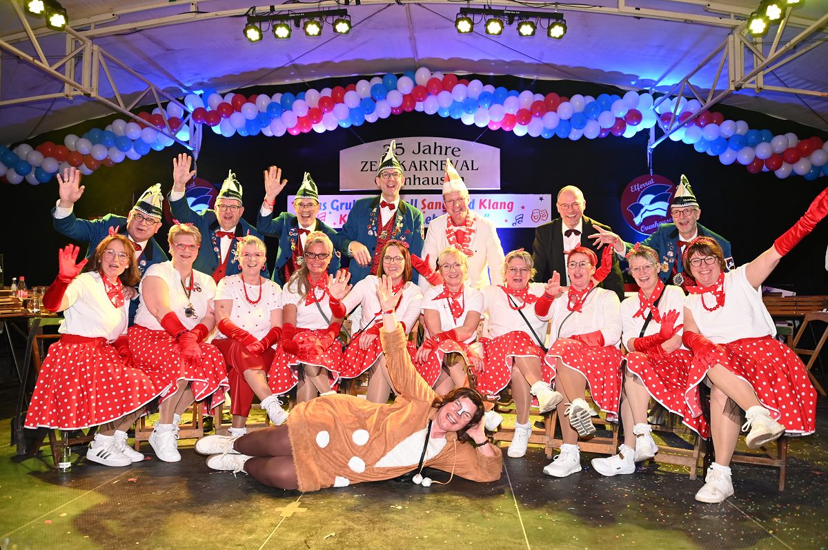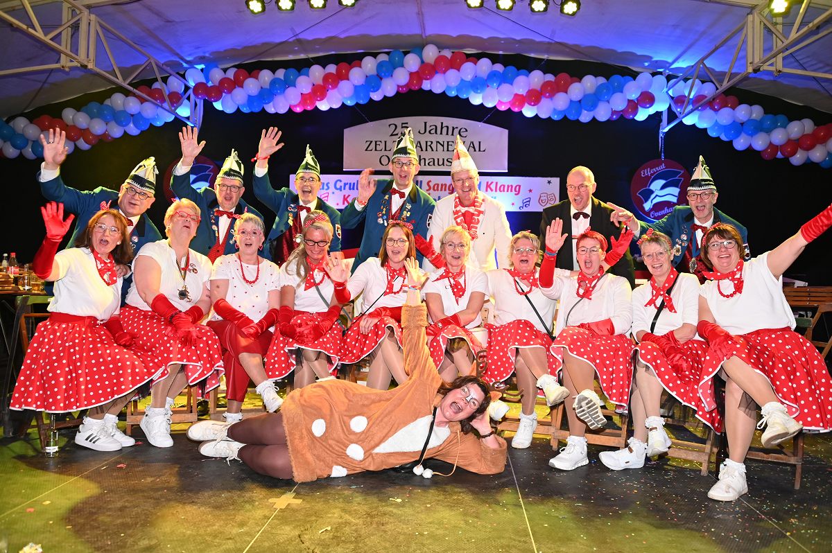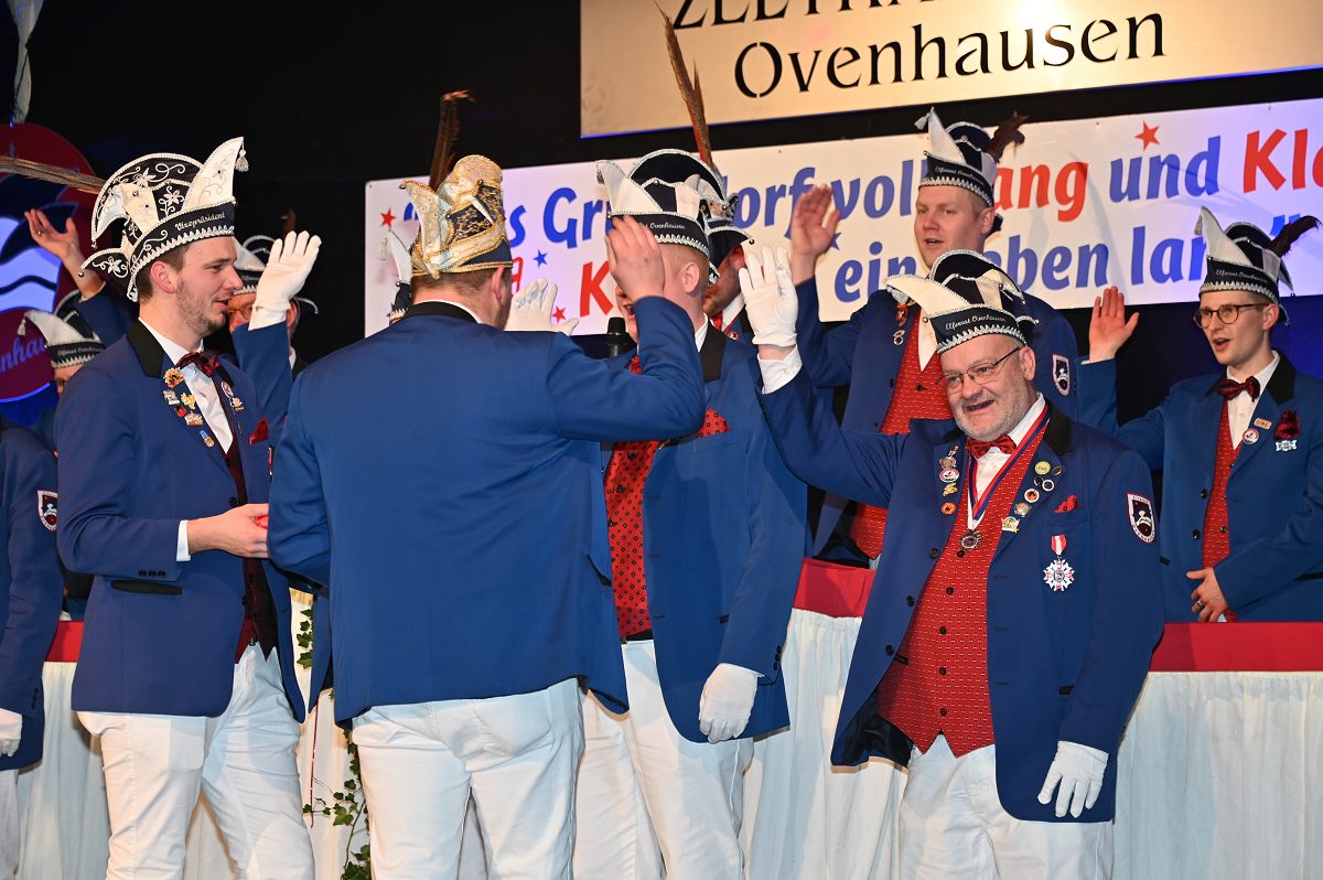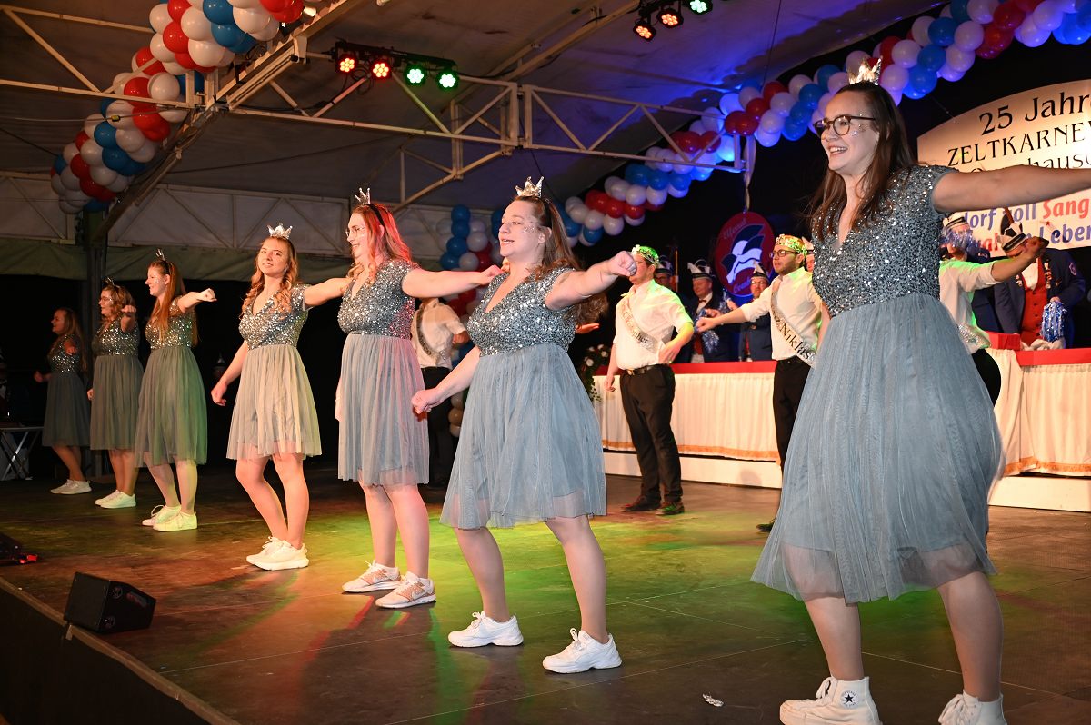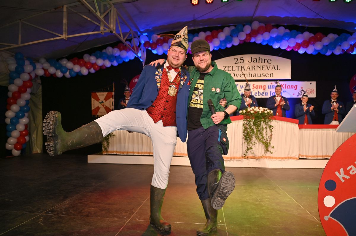 Ovenhausen (TKu). Der Büttenabend im Festzelt „Am Dreiort“ in Ovenhausen am Samstagabend war der zentrale Höhepunkt des Karnevalswochenendes im „Grubedorf“ Ovenhausen. Mehr als 1.111 Närrinnen und Narren füllten das Festzelt bis auf den letzten Platz und erlebten ein Programm, das von Tanz, Humor und der Würdigung ehrenamtlichen Engagements getragen wurde und das unter ständiger Moderation von Sitzungspräsident Jonas „Bone“ Behrenberg. Unter dem Motto „Das Grubedorf voll Sang und Klang – Karneval ein Leben lang“ zeigte sich, wie fest der Karneval in Ovenhausen verankert ist. Das Bühnenprogramm lebte vor allem von seiner tänzerischen Vielfalt. Mehrfach standen die Garden im Mittelpunkt: Die Teeny-Garde Ovenhausen überzeugte mit einem thematisch ausgearbeiteten Tanz, während die Prinzengarde Ovenhausen sowohl mit klassischem Gardetanz als auch später mit einem modernen Showtanz Akzente setzte. Ergänzt wurde das Programm durch die Ehrengarde Ovenhausen sowie die O-Town-Dancegroup, die mit ihrem Auftritt für zusätzlichen Applaus sorgte. Einen bewussten Kontrast bildete die Hip-Hop-Formation ExeQtive von Benny’s Danceschool, die moderne Elemente in das traditionelle Sitzungsformat einbrachte sowie ein Musikquiz.