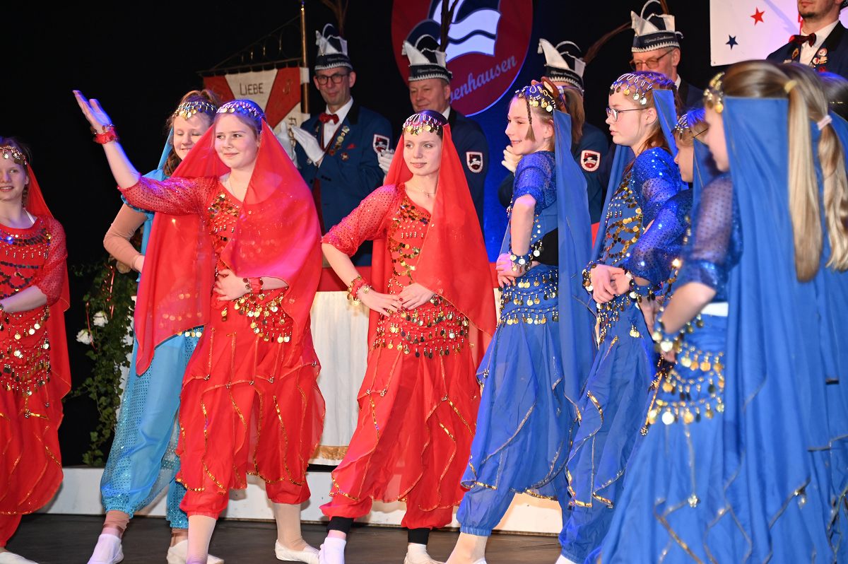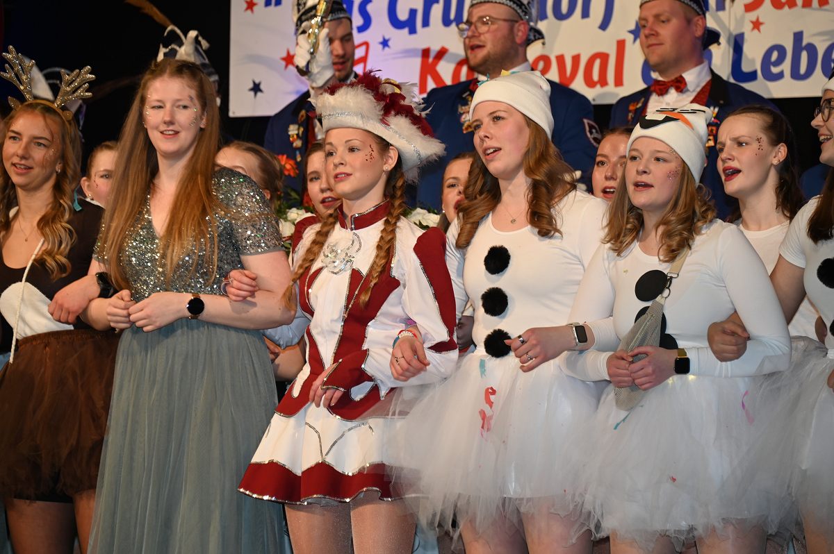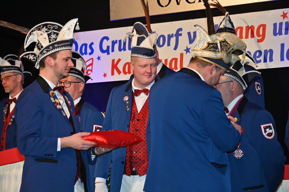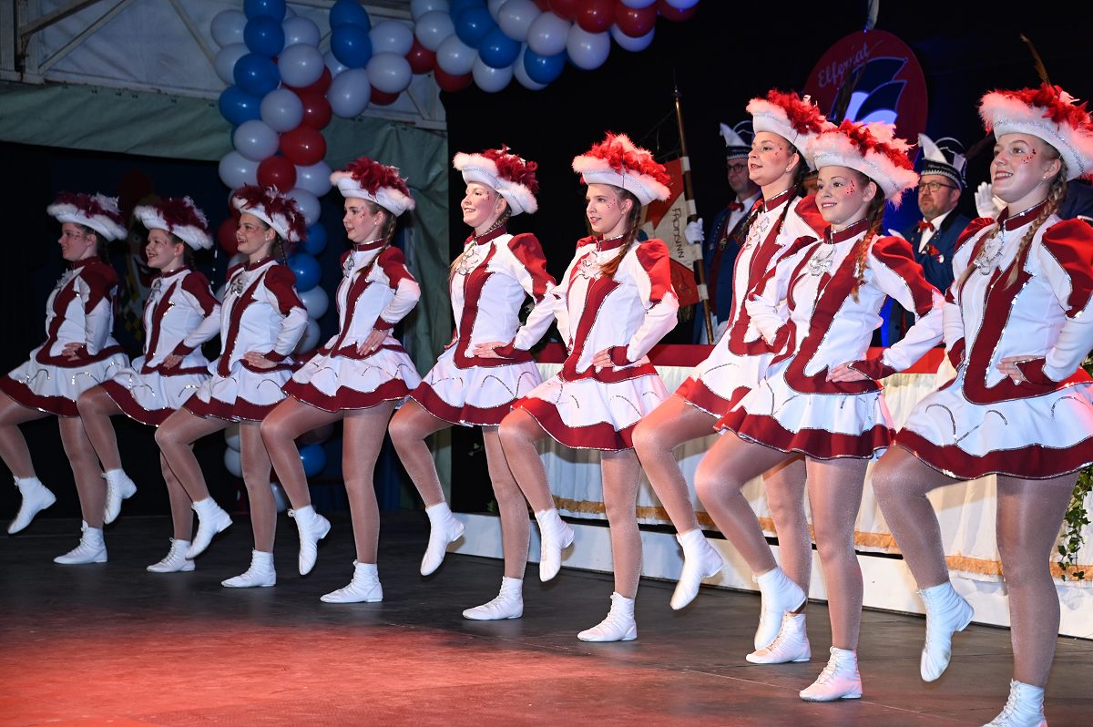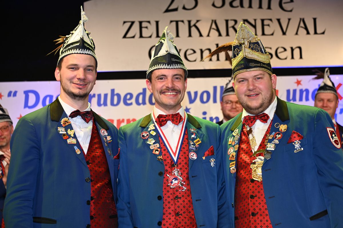 Ovenhausen (TKu). Der Büttenabend im Festzelt „Am Dreiort“ in Ovenhausen am Samstagabend war der zentrale Höhepunkt des Karnevalswochenendes im „Grubedorf“ Ovenhausen. Mehr als 1.111 Närrinnen und Narren füllten das Festzelt bis auf den letzten Platz und erlebten ein Programm, das von Tanz, Humor und der Würdigung ehrenamtlichen Engagements getragen wurde und das unter ständiger Moderation von Sitzungspräsident Jonas „Bone“ Behrenberg. Unter dem Motto „Das Grubedorf voll Sang und Klang – Karneval ein Leben lang“ zeigte sich, wie fest der Karneval in Ovenhausen verankert ist. Das Bühnenprogramm lebte vor allem von seiner tänzerischen Vielfalt. Mehrfach standen die Garden im Mittelpunkt: Die Teeny-Garde Ovenhausen überzeugte mit einem thematisch ausgearbeiteten Tanz, während die Prinzengarde Ovenhausen sowohl mit klassischem Gardetanz als auch später mit einem modernen Showtanz Akzente setzte. Ergänzt wurde das Programm durch die Ehrengarde Ovenhausen sowie die O-Town-Dancegroup, die mit ihrem Auftritt für zusätzlichen Applaus sorgte. Einen bewussten Kontrast bildete die Hip-Hop-Formation ExeQtive von Benny’s Danceschool, die moderne Elemente in das traditionelle Sitzungsformat einbrachte sowie ein Musikquiz.