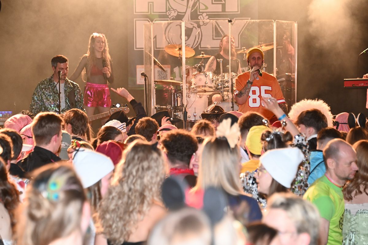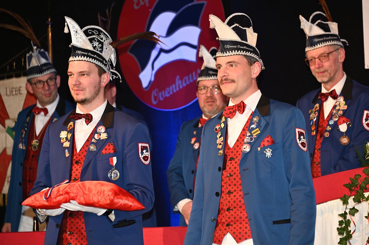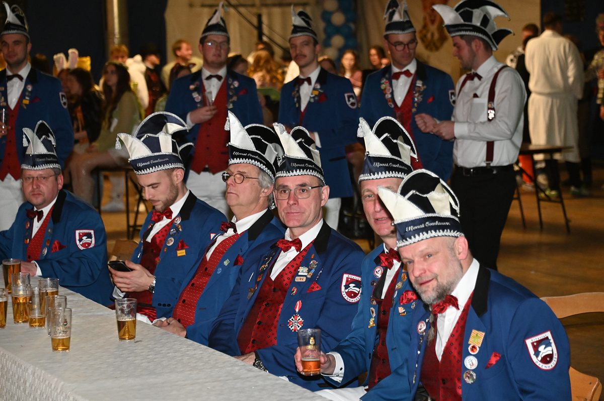Zwischen den Tanzbeiträgen sorgte die Chaostruppe mit einem zweiteiligen Musikquiz für Auflockerung und direkte Publikumsbeteiligung. Humoristischer Mittelpunkt des Abends war jedoch die Büttenrede von Björn aus dem Münsterland. Als „Günther der Treckerfahrer“ griff er das Spannungsfeld zwischen Dorf- und Stadtleben auf und verband Alltagsbeobachtungen mit lokalem Bezug. Die Mischung aus ostwestfälischem Slang und klaren Pointen traf den Geschmack des Publikums. Ein fester Bestandteil des Büttenabends war die Ehrung langjährig engagierter Karnevalisten. Für elf Jahre Tätigkeit im Elferrat wurden Jannis Todt, Sascha Winkelhahn, Christian Köster und Hans-Werner Schulte ausgezeichnet. Den 22-Jahre-Orden erhielt Heiner Dohmann, während Josef Köster für 33 Jahre ehrenamtliches Engagement geehrt wurde. Der Orden des Jahres 2026 ging an Till Janowitz, der für seine Verdienste als Techniker im Hintergrund ausgezeichnet wurde. Musikalisch wurde der Abend durchgehend von der Hofkapelle Ovenhausen getragen, die Einmärsche, Schunkelrunden und das gemeinsame Finale begleitete. Mit dem Auftritt von Holy Moly ging der Büttenabend schließlich in die anschließende Karnevalsparty über.