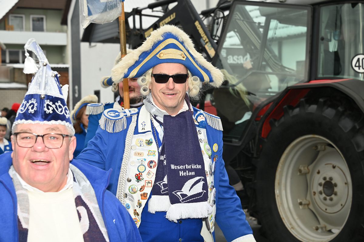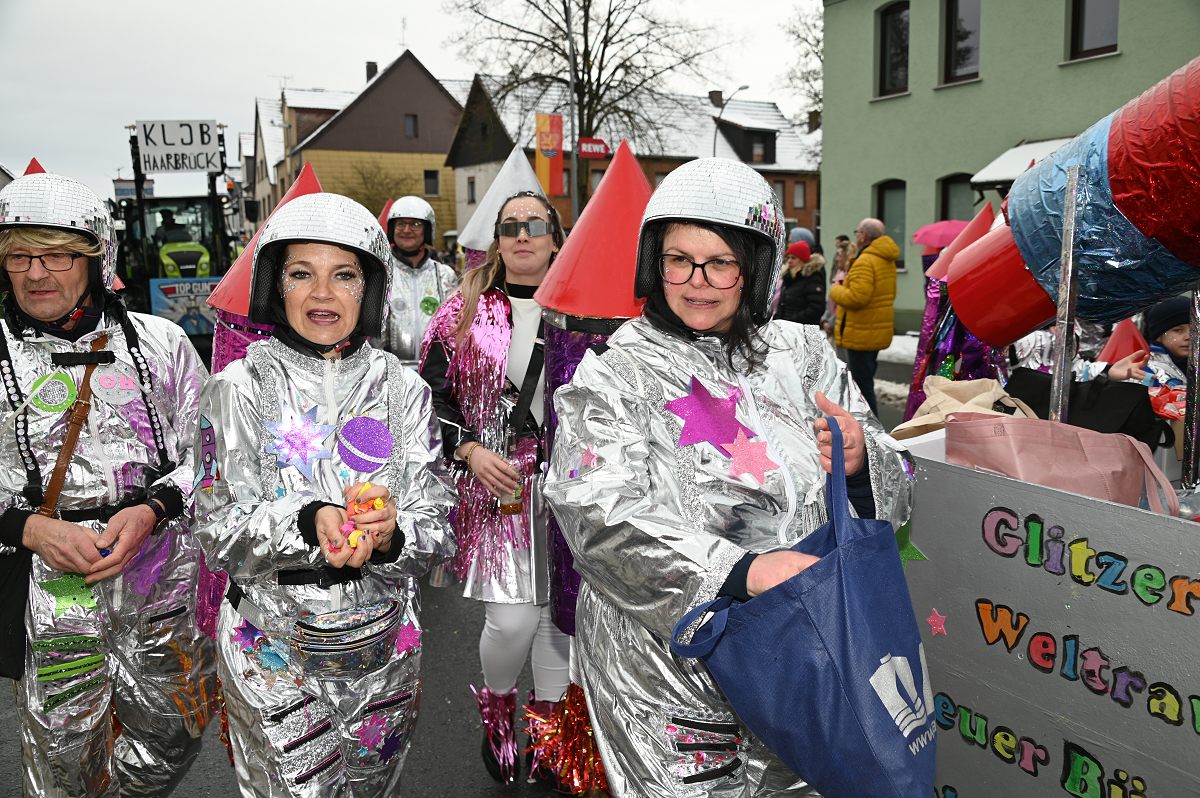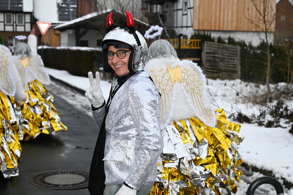 Beverungen/Lauenförde (TKu). Ganz im Zeichen des Mottos „Der CVWB glitzert grenzenlos – im Dreiländereck ist richtig was los!“ verwandelten sich Lauenförde und Beverungen am Rosenmontag in ein funkelndes Karnevalsmeer. Der große Jubiläumsumzug des Carnevalsverein Weserbrücke e.V. (CVWB) markierte den Höhepunkt der Session und zugleich das 50-jährige Bestehen des Vereins. Hunderte Meter lang zog sich der farbenprächtige Lindwurm von der Würgasser Straße durch Lauenförde, weiter über die Weserbrücke bis zur Stadthalle Beverungen. Angeführt vom Prinzenwagen des CVWB mit Prinz Florian (Kastens), „der balearisch Regierende“, und Prinzessin Carena (Zarnitz), „die ewig Marschierende", präsentierten sich die Umzugsteilnehmenden fantasievoll und detailverliebt: Raketen, glitzernde Phantasievögel, Schneekristalle, Cowboys, Hexen, Discogruppen und sogar festlich geschmückte Weihnachtsbäume sorgten für staunende Gesichter.