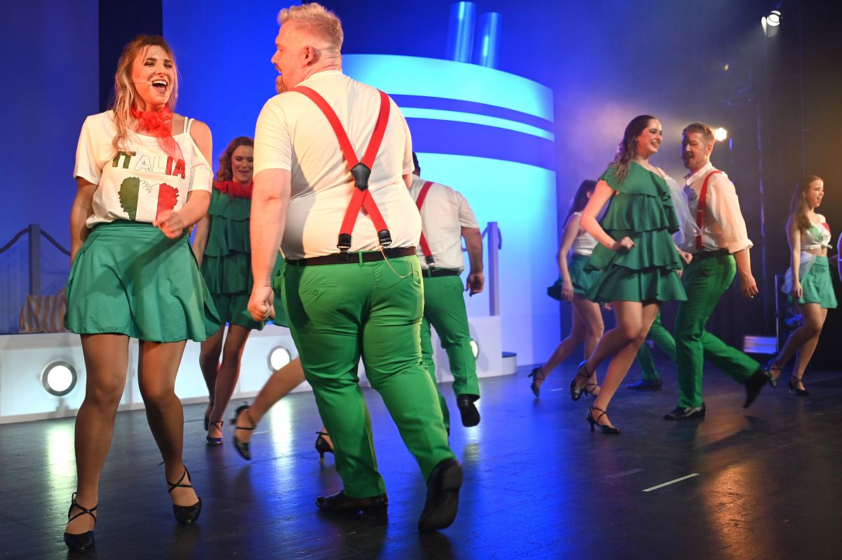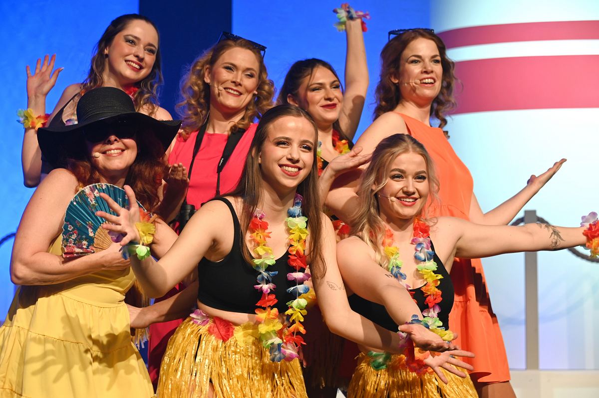 Auf der Bühne überzeugte ein großes Ensemble aus erfahrenen Darstellerinnen und Darstellern sowie neuen Gesichtern. Zu sehen waren Birgit Auel, Thomas Golüke, Sandra Hake, Sebastian Hegener, Pia Hermanns, Martin Klinkemeier, Sergej Rau, Björn Schwarzer, Maria Sievers und Carina Stickel. Frischen Wind brachten zudem Mika Germa, Xenia Heidebrecht, Alina Schmieder und Ida Sonnemann, die gemeinsam mit dem Ensemble glänzten. In zweieinhalb Stunden geht es in der Stadthalle einmal rund um die Welt, möglich gemacht durch das Kreuzfahrtschiff des Schlosstheaters. Nach dem Einchecken führt Kapitän Björn Tegeler das Publikum von Italien über Ägypten und Afrika bis nach Südamerika und New York, bevor es wieder zurück in heimische Gewässer geht. Im Mittelpunkt stehen dabei nicht nur die Reiseziele, sondern auch das Leben an Bord: Szenen in der Barbara Bar, sportliche Einlagen im Fitnessstudio („Bauch, Beine, Po“), Zauberkunst und humorvolle Begegnungen mit skurrilen Bojen und Leuchttürmen sorgen immer wieder für Schmunzeln und Lacher.