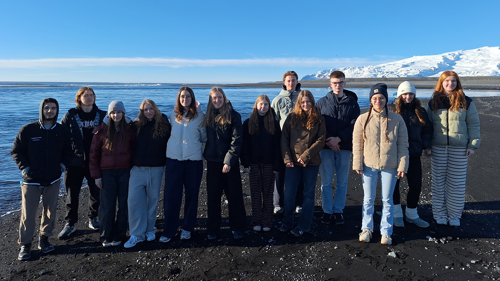 Auch außerhalb des Unterrichts gab es viele Gelegenheiten zur Begegnung. Treffen im Jugendzentrum, ein gemeinsamer Restaurantbesuch und ein Schulball stärkten den persönlichen Austausch. Auf dem Rückweg standen weitere Stopps an Gletschern, am Strand und an einem aktiven Vulkan auf dem Programm. Diese Eindrücke schärften den Blick für die Besonderheit und zugleich die Verletzlichkeit der isländischen Natur.