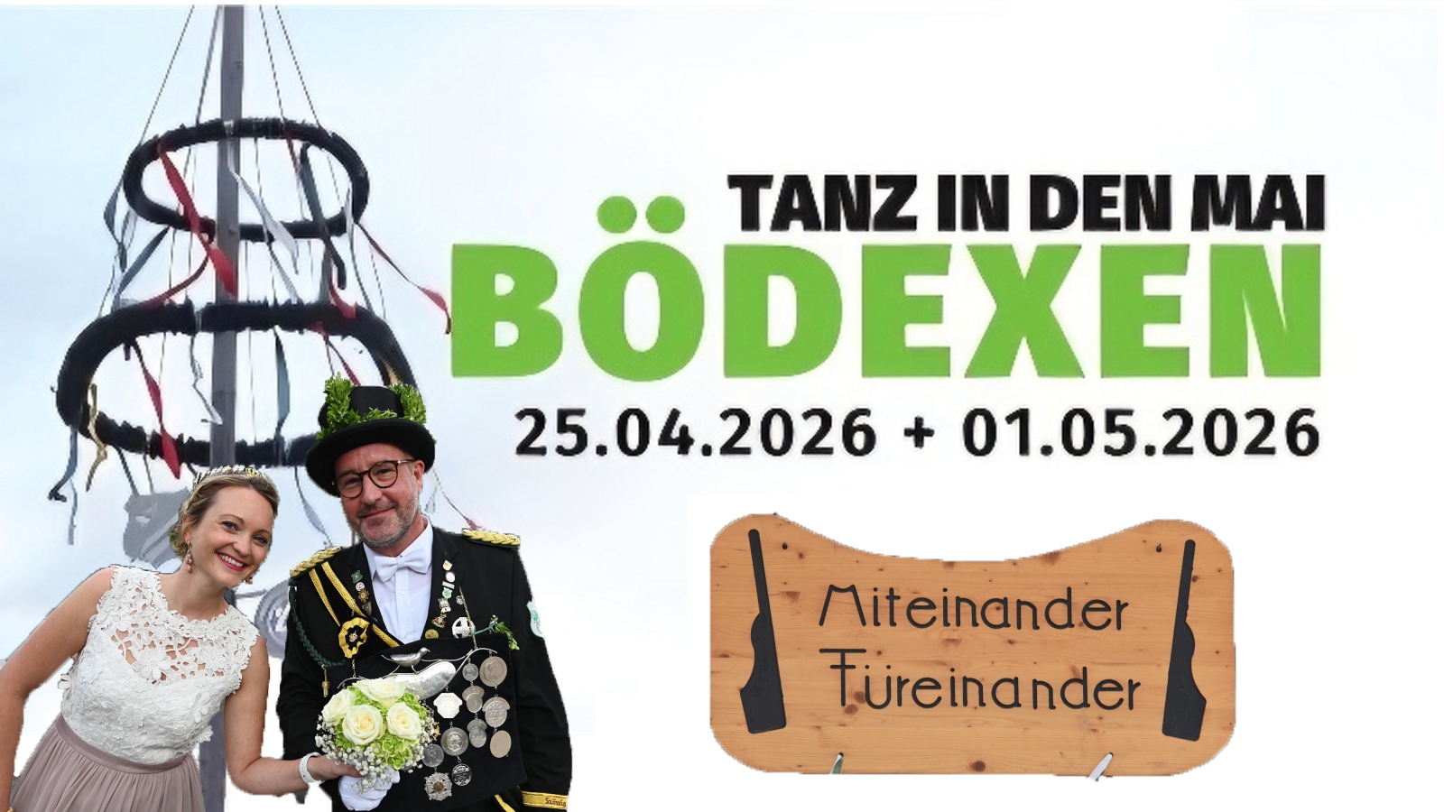 Den Auftakt bildet am Samstag, 25. April, der traditionelle „Tanz in den Mai“. Ab 19 Uhr startet die Feier auf dem Schützenplatz in Bödexen mit der Aufstellung des Maibaums, begleitet von Musik, guter Laune und zahlreichen Besuchern. Für die passende musikalische Untermalung sorgt DJ Aschi, der „mit einem abwechslungsreichen Mix aus aktuellen Hits und Klassikern für ausgelassene Stimmung und eine volle Tanzfläche sorgen dürfte“, wie es von der Schützenbruderschaft heißt. Die Veranstalter hoffen auf viele Gäste, die gemeinsam bis in die Nacht hinein feiern.