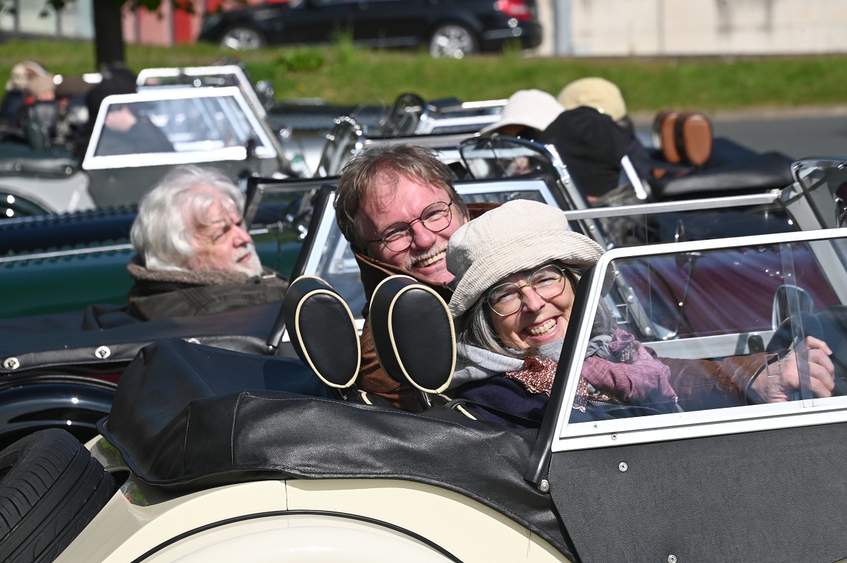 Auch Marco und Silke Lührs aus dem Heidekreis nahmen an der Tour teil – mit einem Morgan Plus 8 aus dem Jahr 1984, der 156 PS leistet. Das Paar fährt bevorzugt offen und mit passender Fliegerhaube. „Mit Verdeck zu fahren, macht nicht viel Spaß“, sagt Marco Lührs. Entscheidend sei das unmittelbare Fahrerlebnis: „Der Reiz liegt im entspannten Fahren.“
